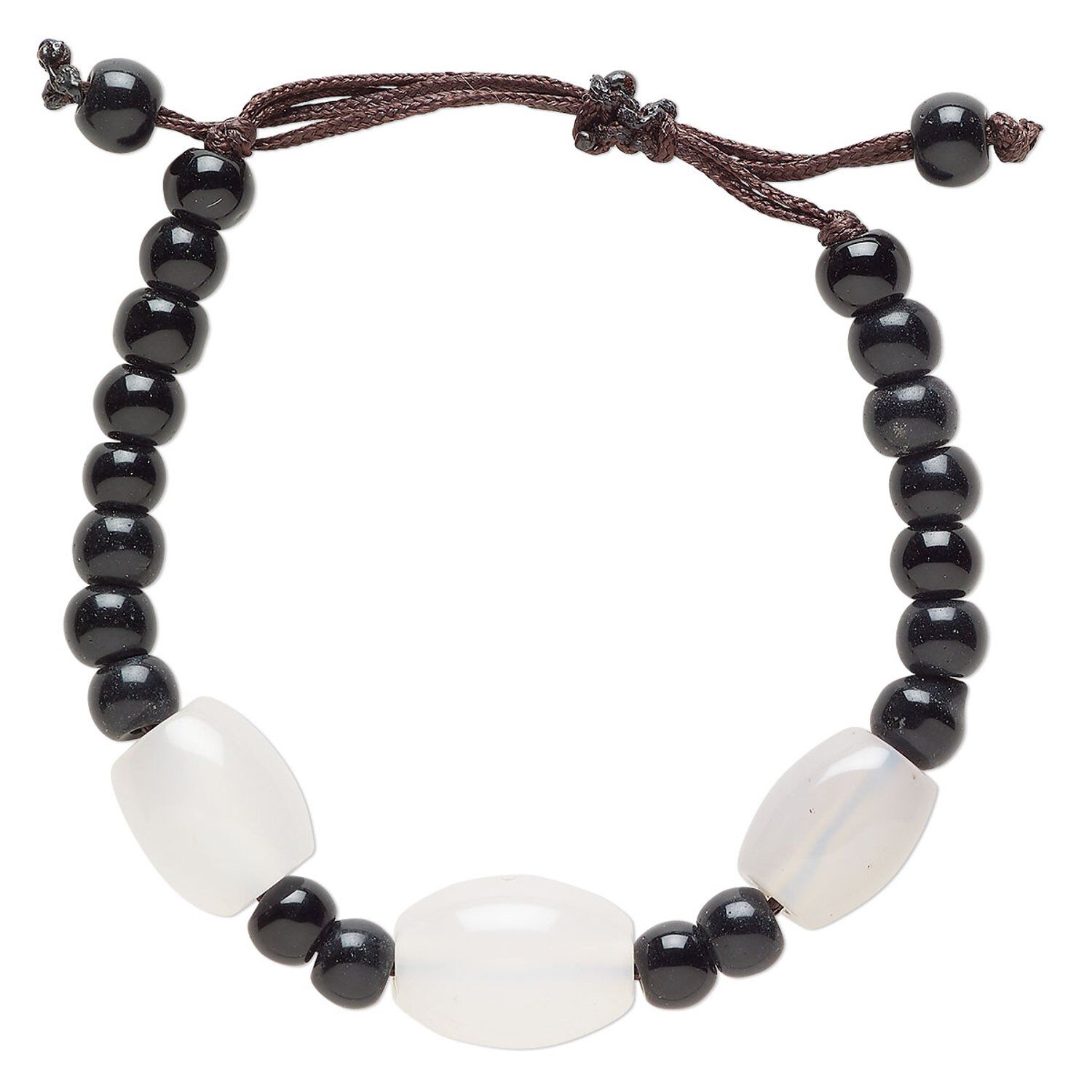White agate / glass / waxed cotton 1pkg1, oval bracelet adjustable 5-7.5 inch 12mm