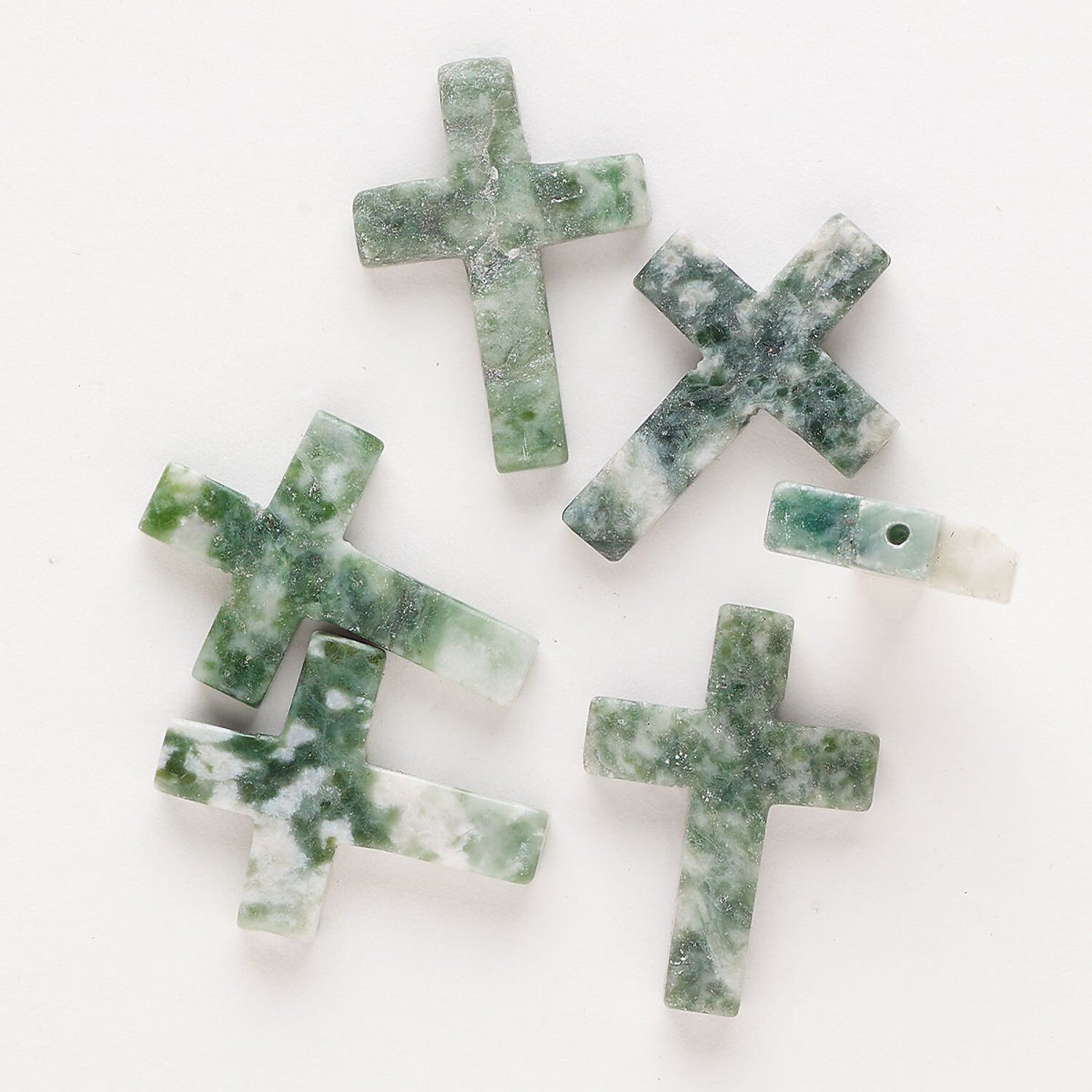 Tree agate 1pkg6, half-drilled cross drop natural 21x15mm-26x18mm