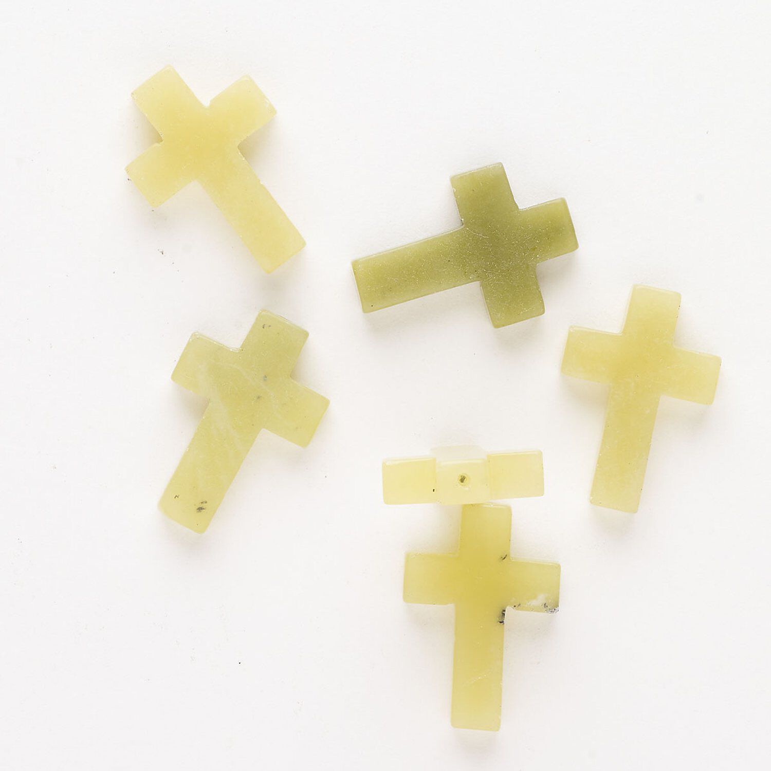 Olive new "jade" 1pkg6, half-drilled cross drop natural 21x14mm-22x15mm