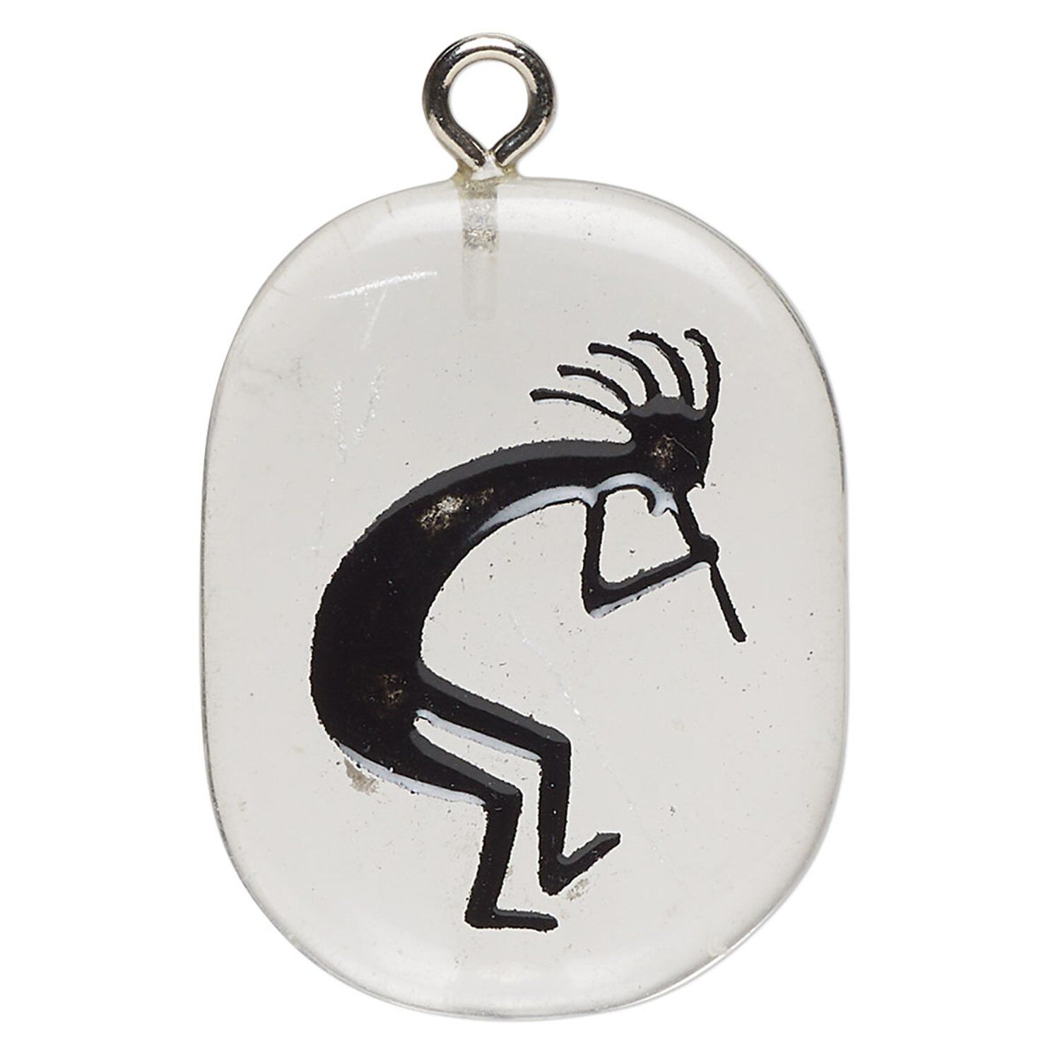 Focal 1pkg1 glass / enamel / steel, 26x20-38x31mm single-sided freeform oval / Kokopelli, transparent / silver finish