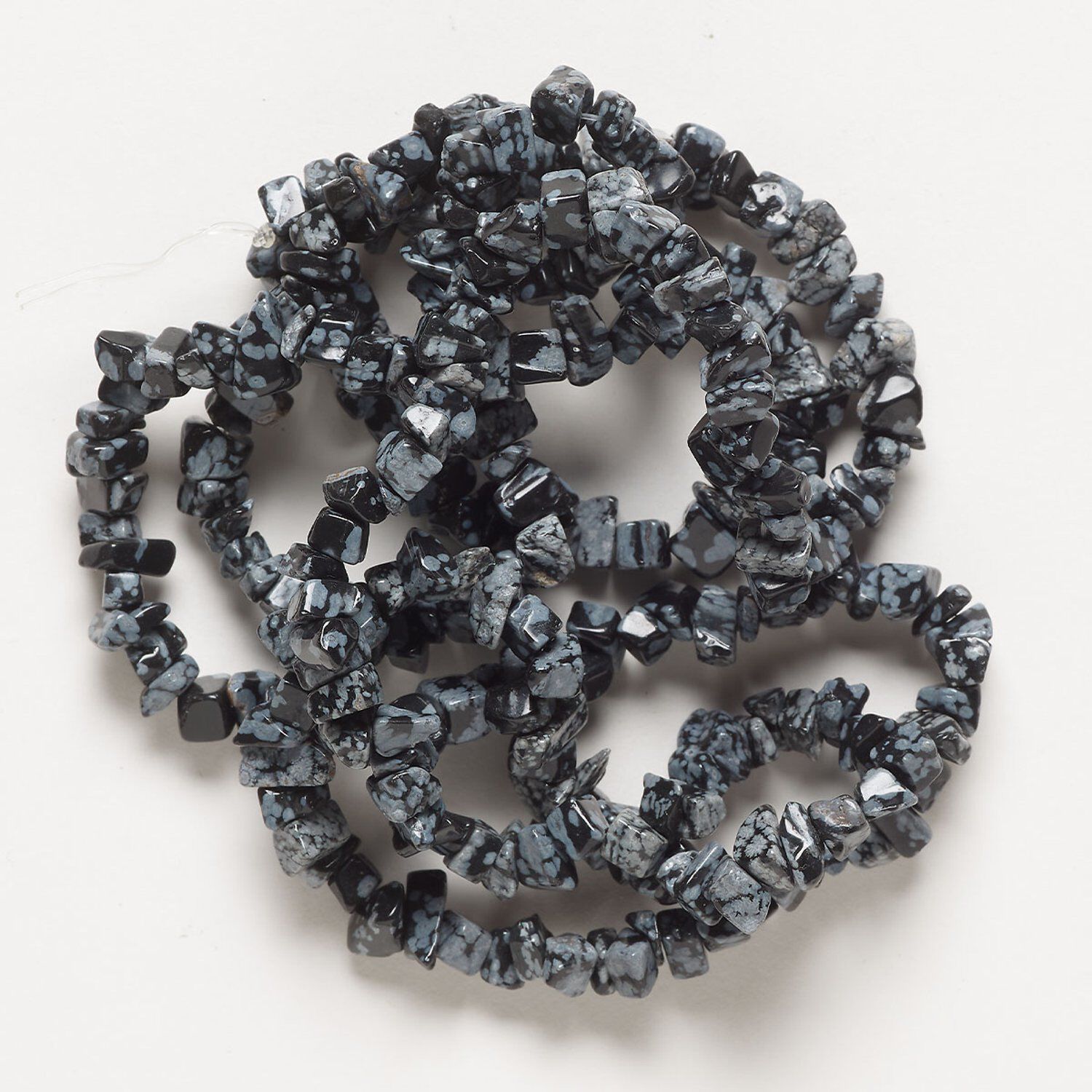 Bead, snowflake obsidian (natural), small to large chip, C grade, Mohs hardness 3. Sold per 32-inch strand.