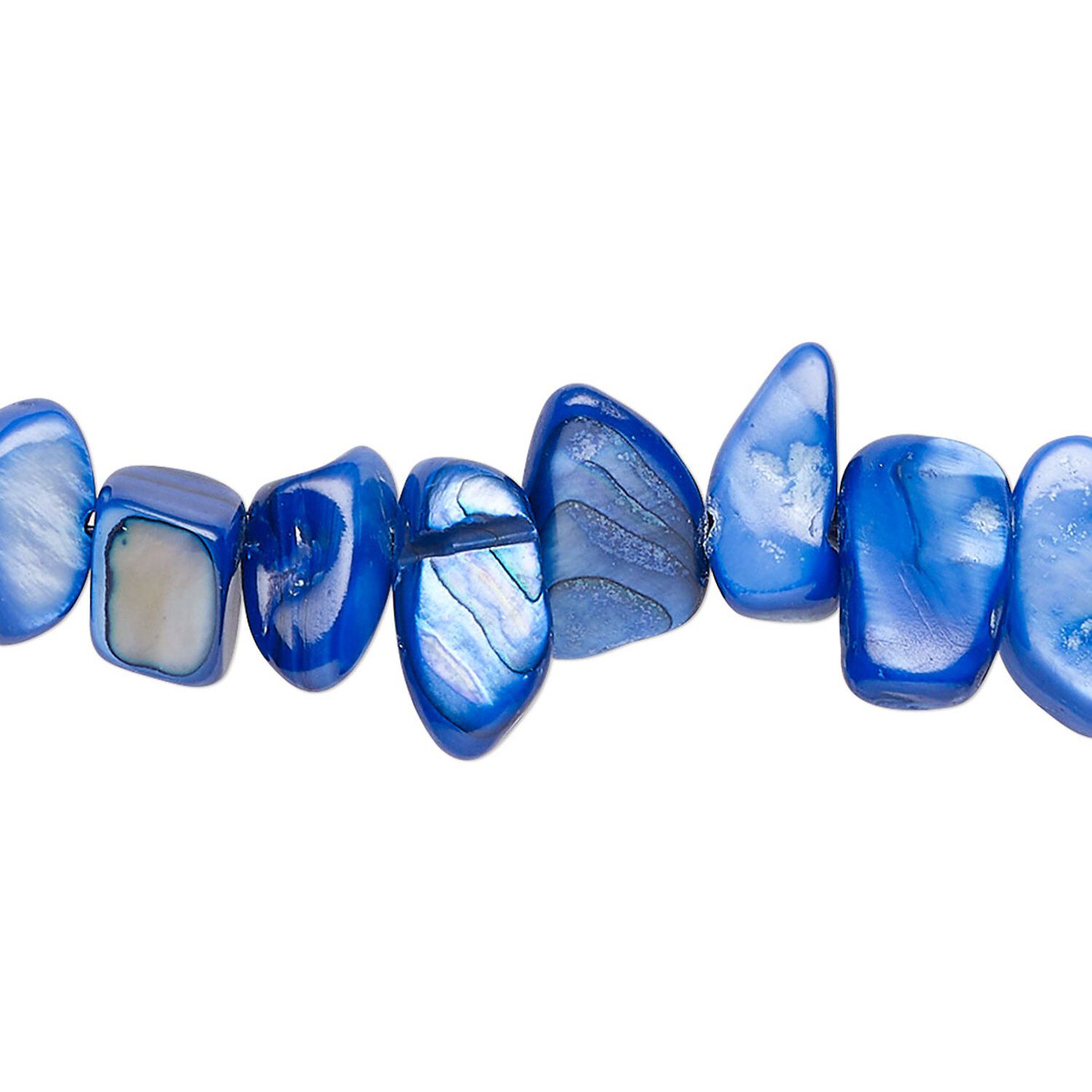 Bead, mother-of-pearl shell (dyed), blue, small to extra-large chip, Mohs hardness 3-1/2. Sold per 30-inch strand.