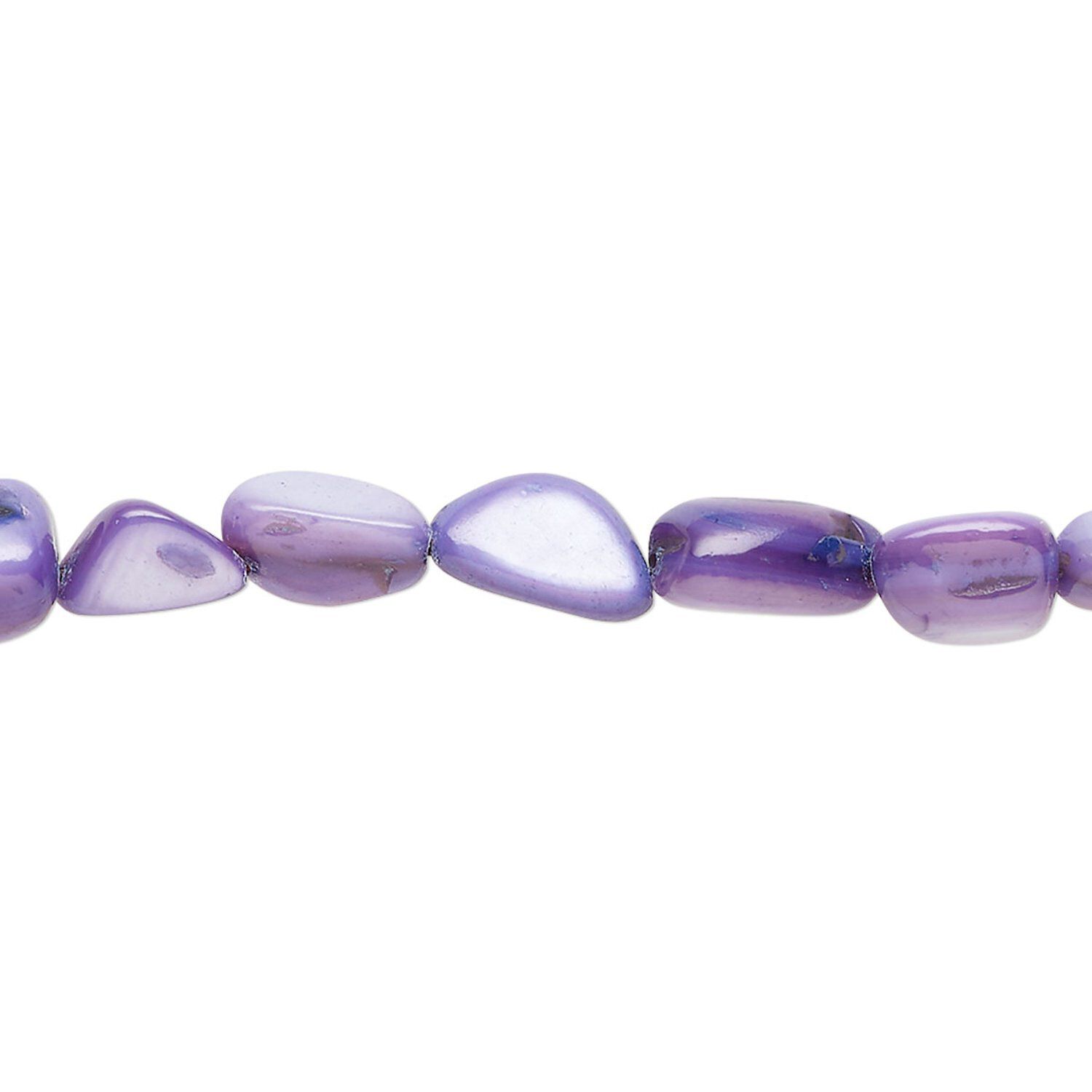 Bead, mother-of-pearl shell (dyed), lilac, small to large pebble, Mohs hardness 3-1/2. Sold per 30-inch strand.