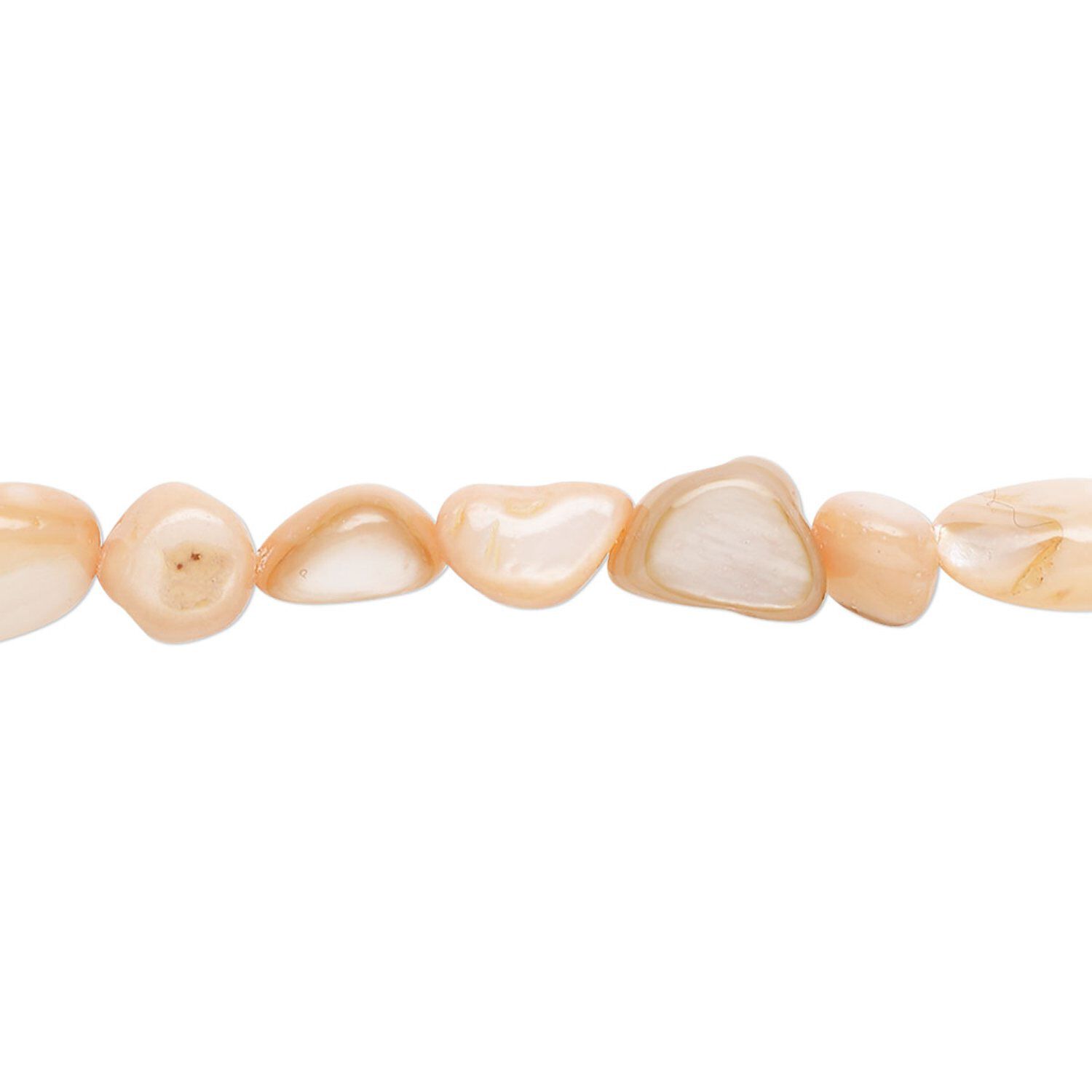 Bead, mother-of-pearl shell (dyed), soft pink, small to large pebble, Mohs hardness 3-1/2. Sold per 30-inch strand.