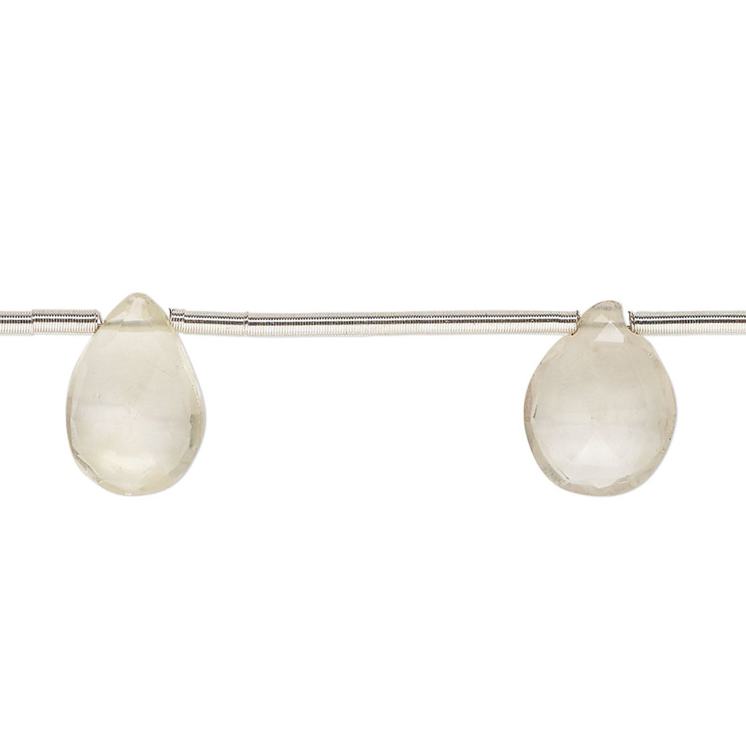 Smoky quartz / quartz crystal / lemon quartz 1pkg5, hand-cut top-drilled faceted puffed teardrop bead 10x7mm-13x9mm