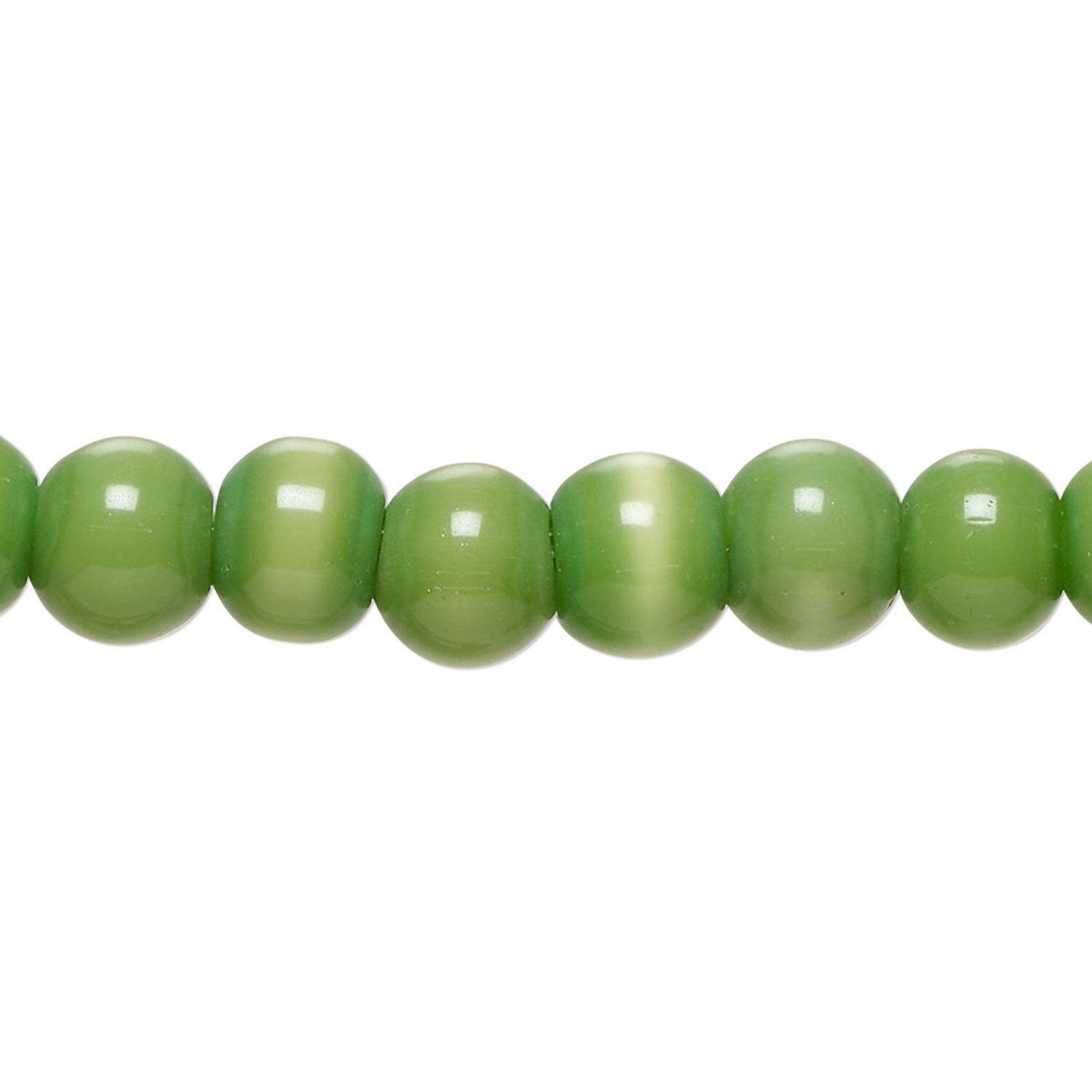 Bead, cat's eye glass (fiber optic glass), moss green, 8x5mm-9x8mm rondelle and irregular round. Sold per 14-inch strand, approximately 55 beads.