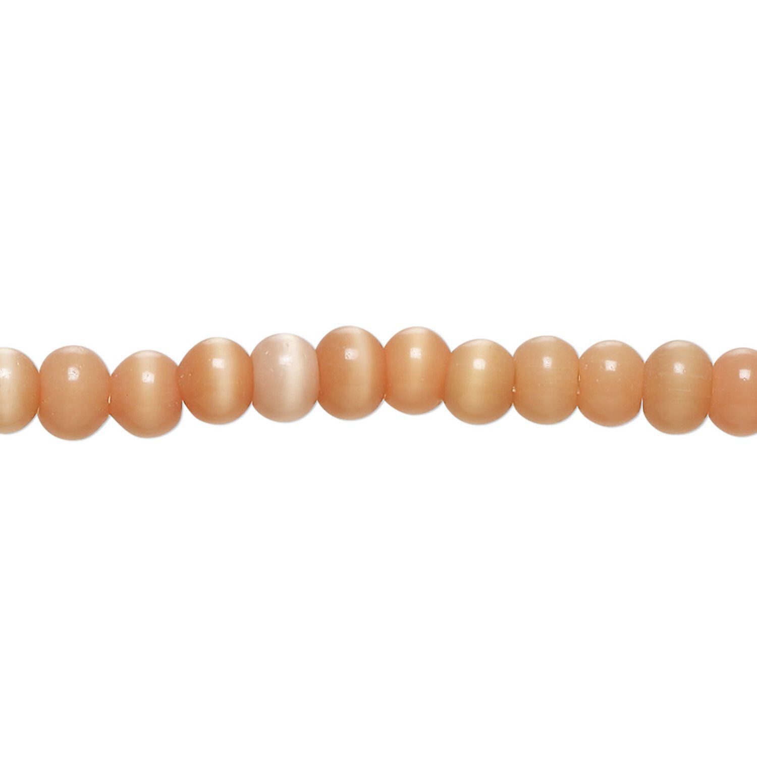 Bead, cat's eye glass (fiber optic glass), dark peach, 5x3mm-6x5mm rondelle. Sold per 14-inch strand, approximately 95 beads.