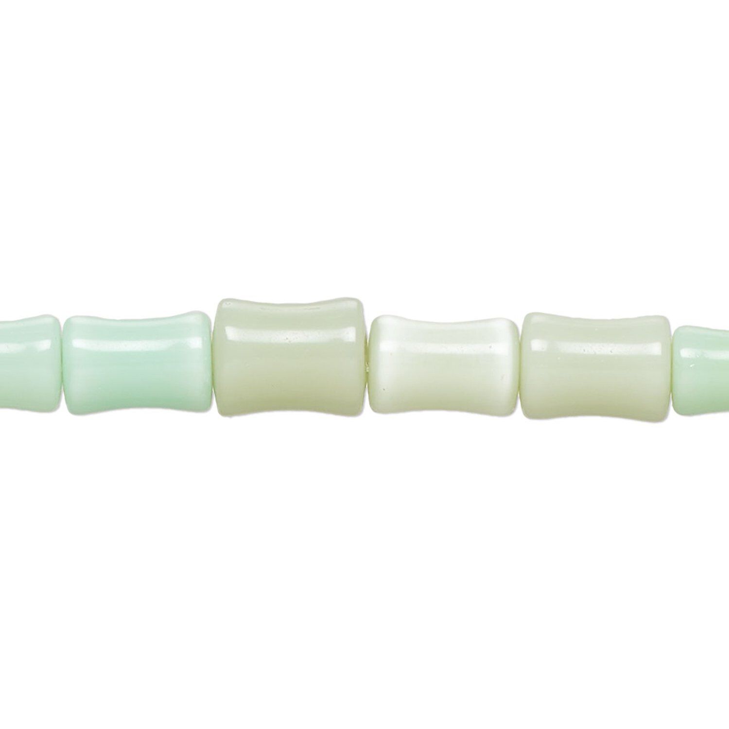 Bead, cat's eye glass (fiber optic glass), sea green and mint, 9x5mm-10x7mm bamboo. Sold per 14-inch strand, approximately 40 beads.