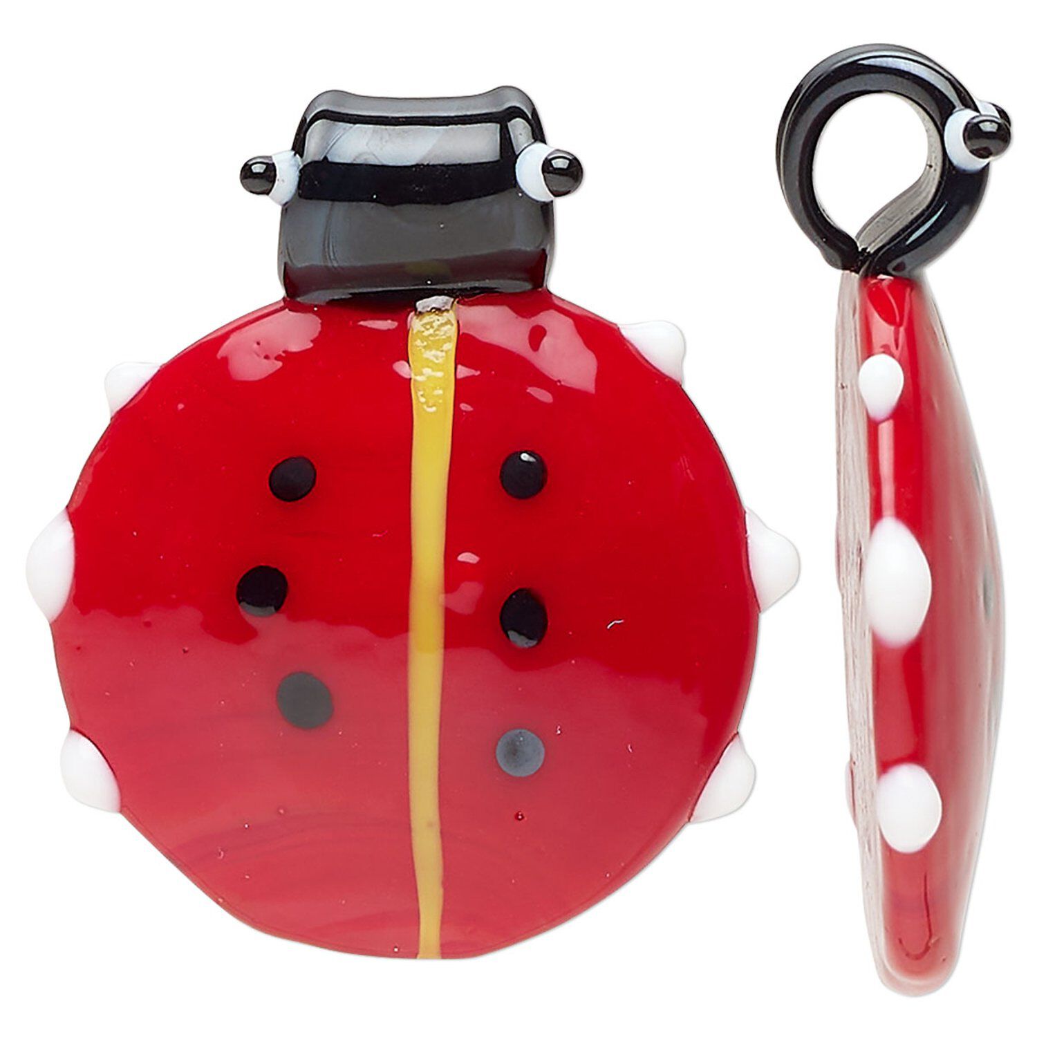 Focal, lampworked glass, multicolored, 36x34mm-37x35mm ladybug. Sold individually.