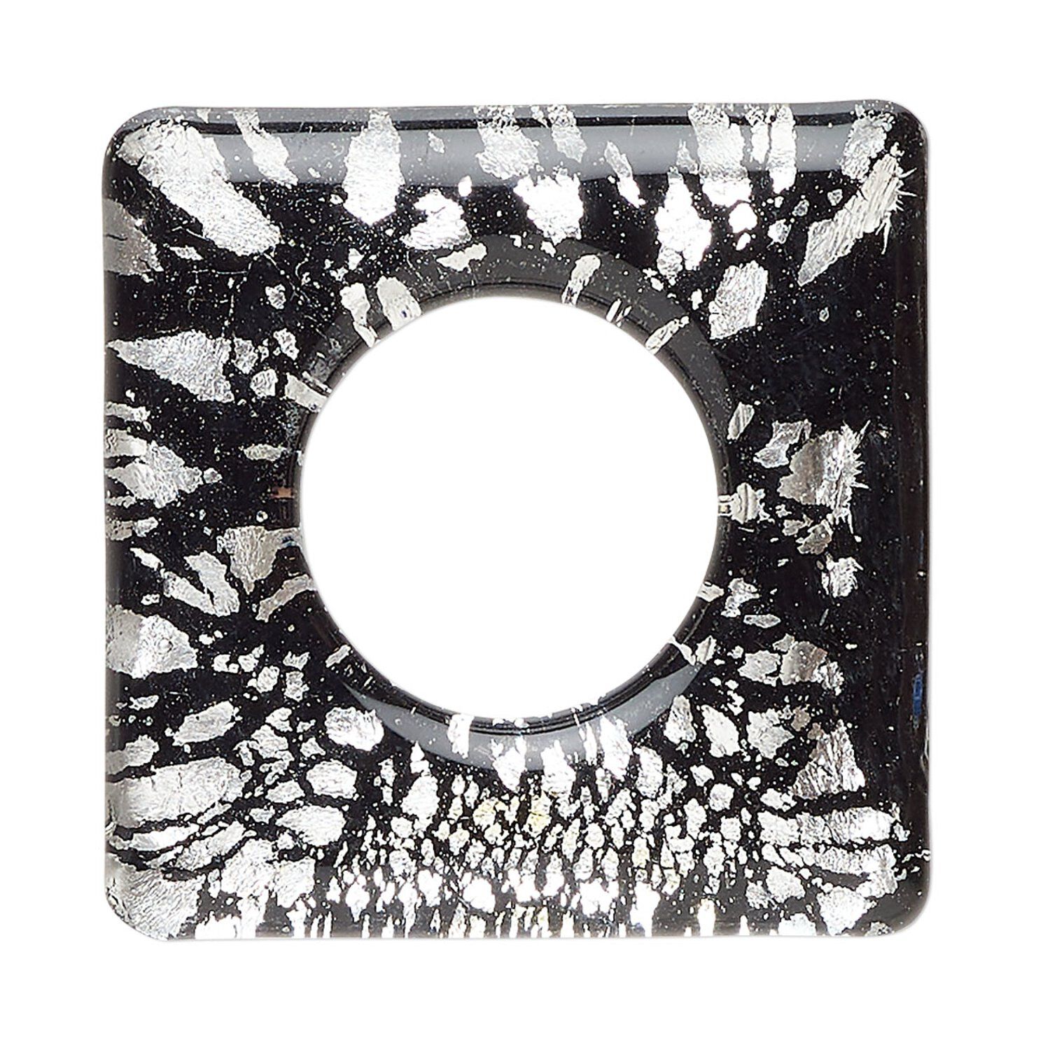 Focal, lampworked glass, clear and opaque black, 34-35mm square go-go with silver-colored foil. Sold individually.