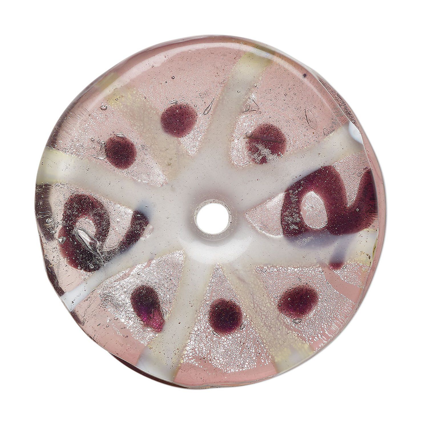 Focal, lampworked glass, pkg/1, opaque purple and white with silver-colored foil, 36-37mm undrilled donut.