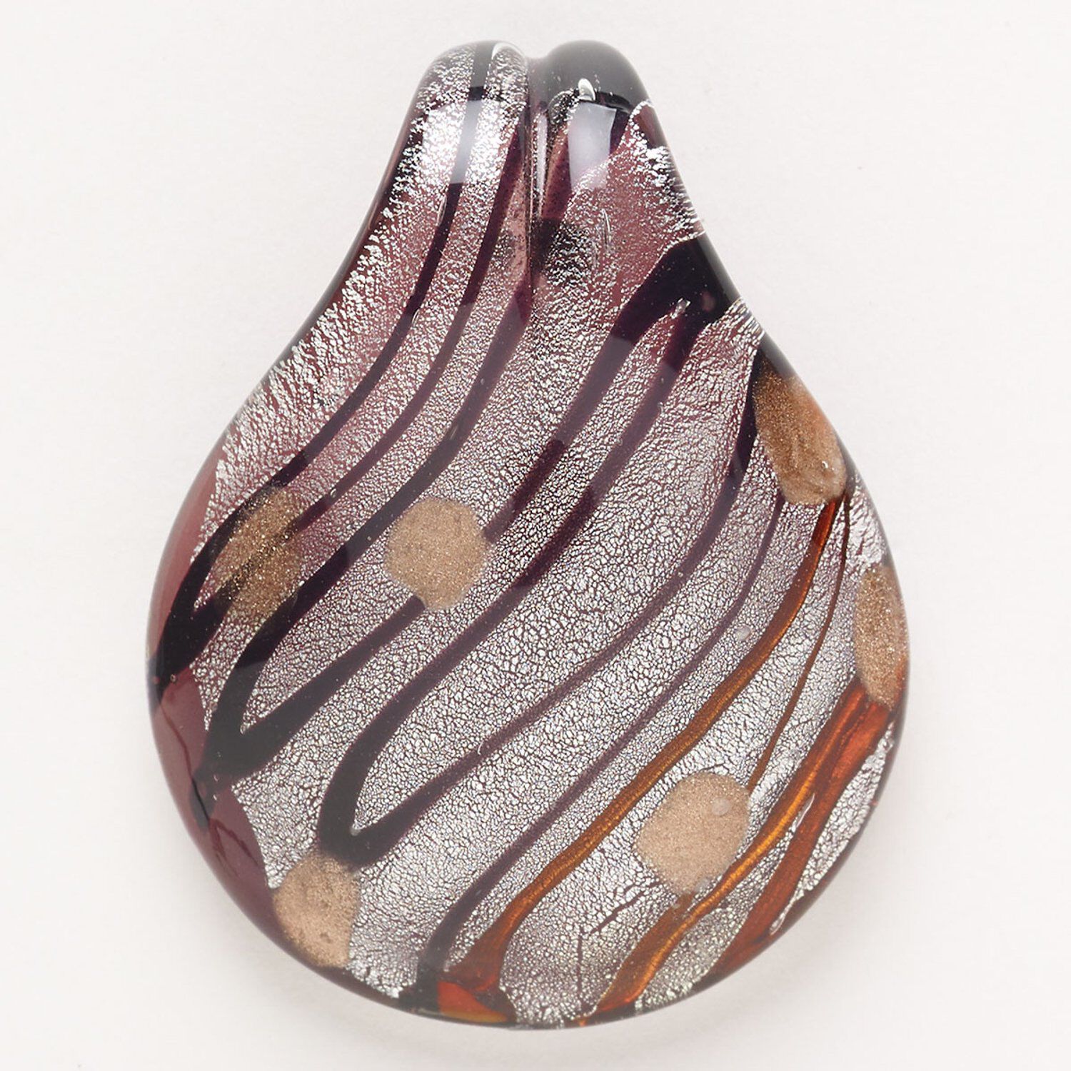 Focal, lampworked glass, pkg/1, opaque purple and red-orange with silver-colored foil and copper-colored glitter, 49x36mm-52x40mm spoon.