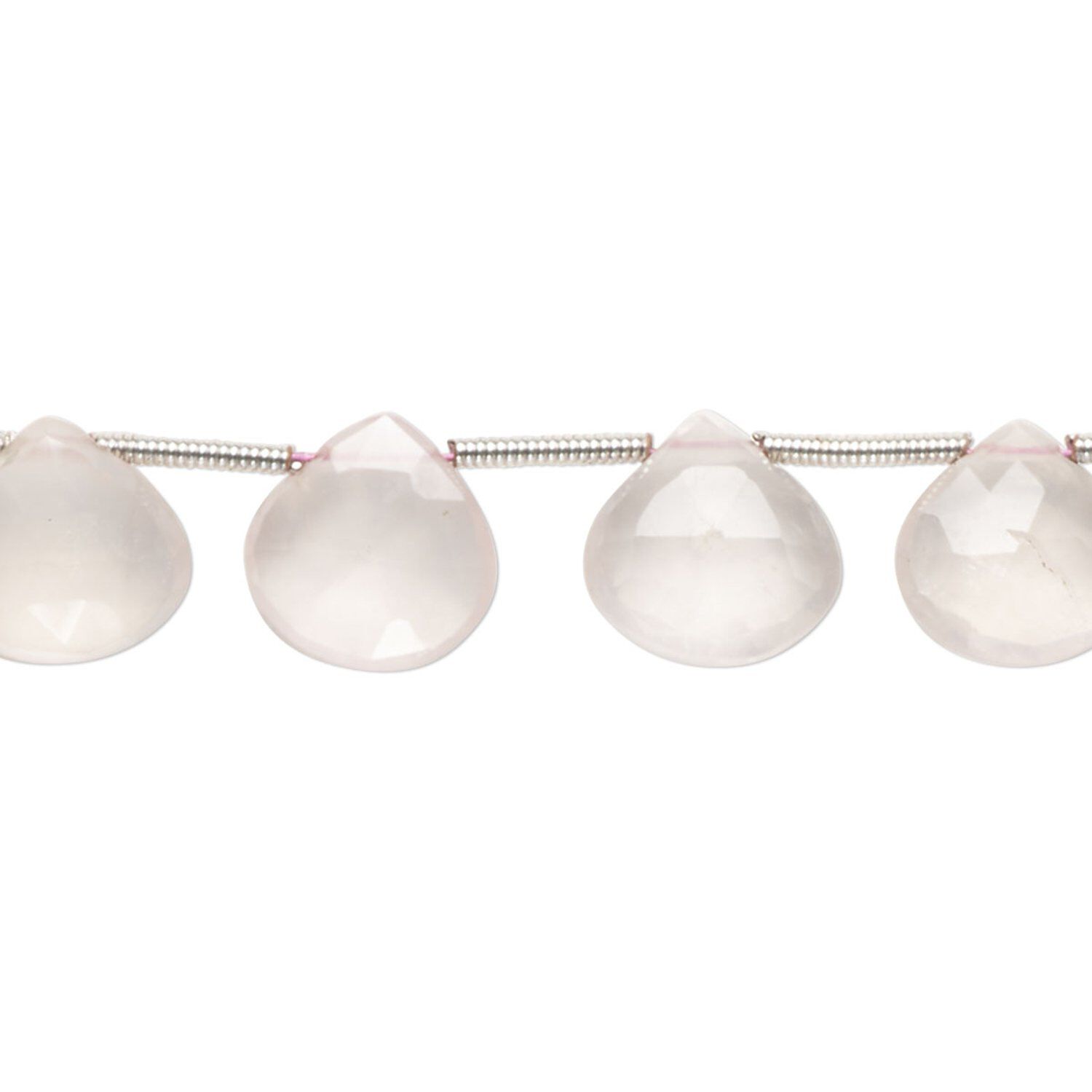Rose quartz 1pkg16, hand-cut top-drilled faceted puffed teardrop bead natural 7mm-12x11mm