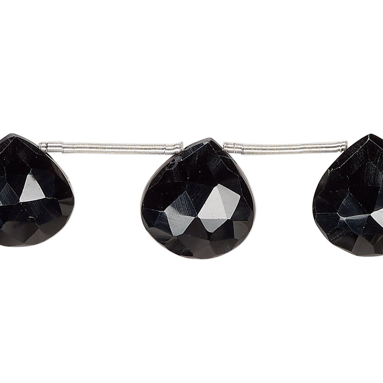 Black spinel 1pkg10, hand-cut top-drilled faceted puffed teardrop bead 12-14mm