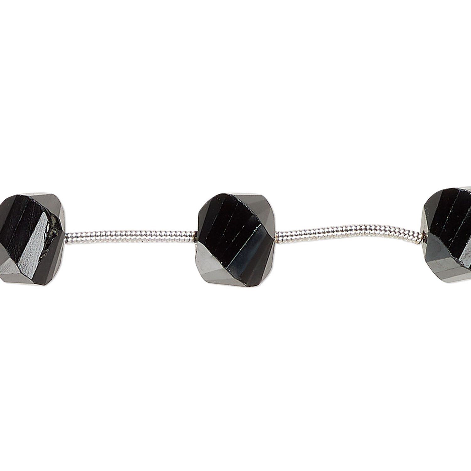 Black spinel 1pkg9, hand-cut spiral-cut cube bead 10x8mm-12x10mm