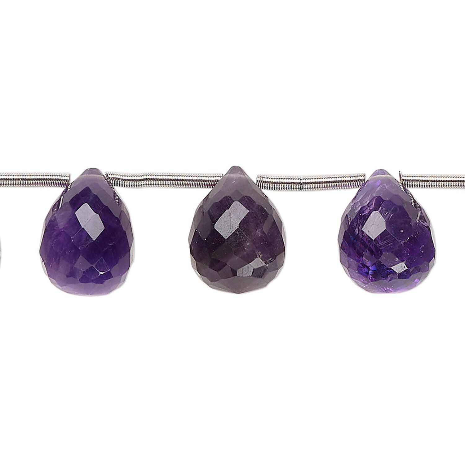 Bead, amethyst (natural), dark, 10x8mm-15x9mm hand-cut top-drilled faceted briolette, B- grade, Mohs hardness 7. Sold per pkg of 16.