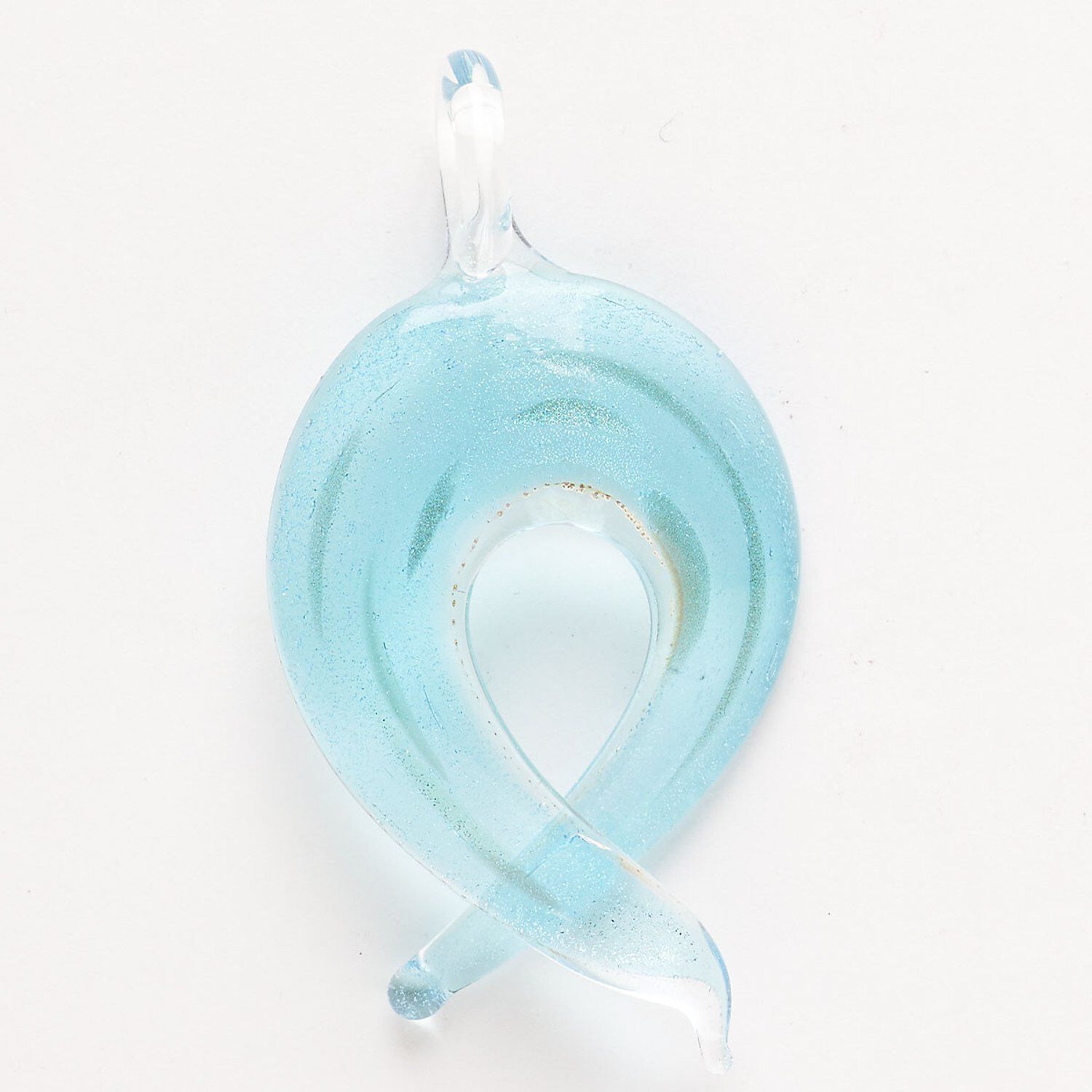 Focal, lampworked glass, pkg/1, transparent light blue with silver-colored foil and copper-colored glitter, 55x30-57x35mm ribbon.