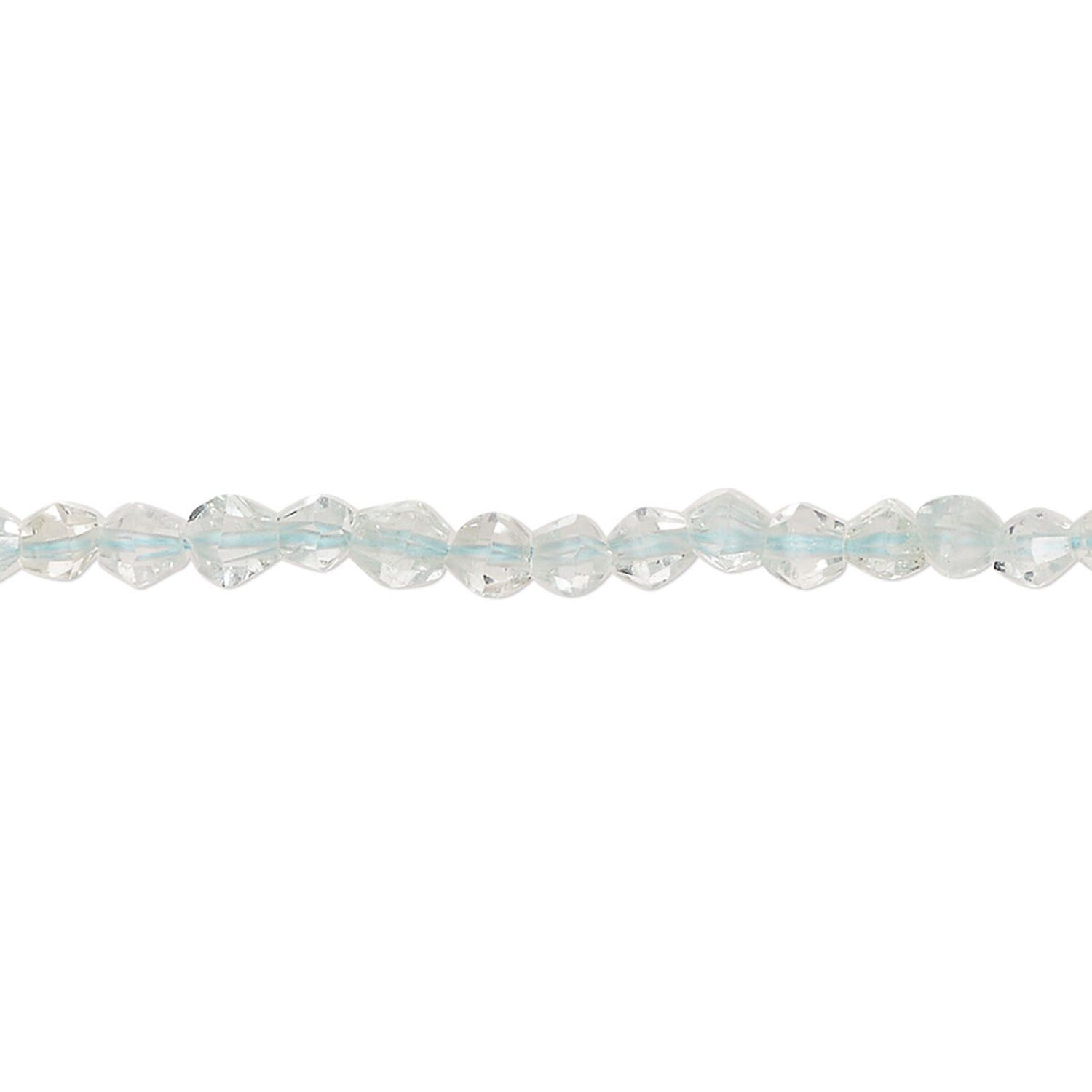 Bead, aquamarine (heated), 3-4mm hand-cut faceted bicone, B grade, Mohs hardness 7-1/2 to 8. Sold per 8-inch strand, approximately 60 beads.