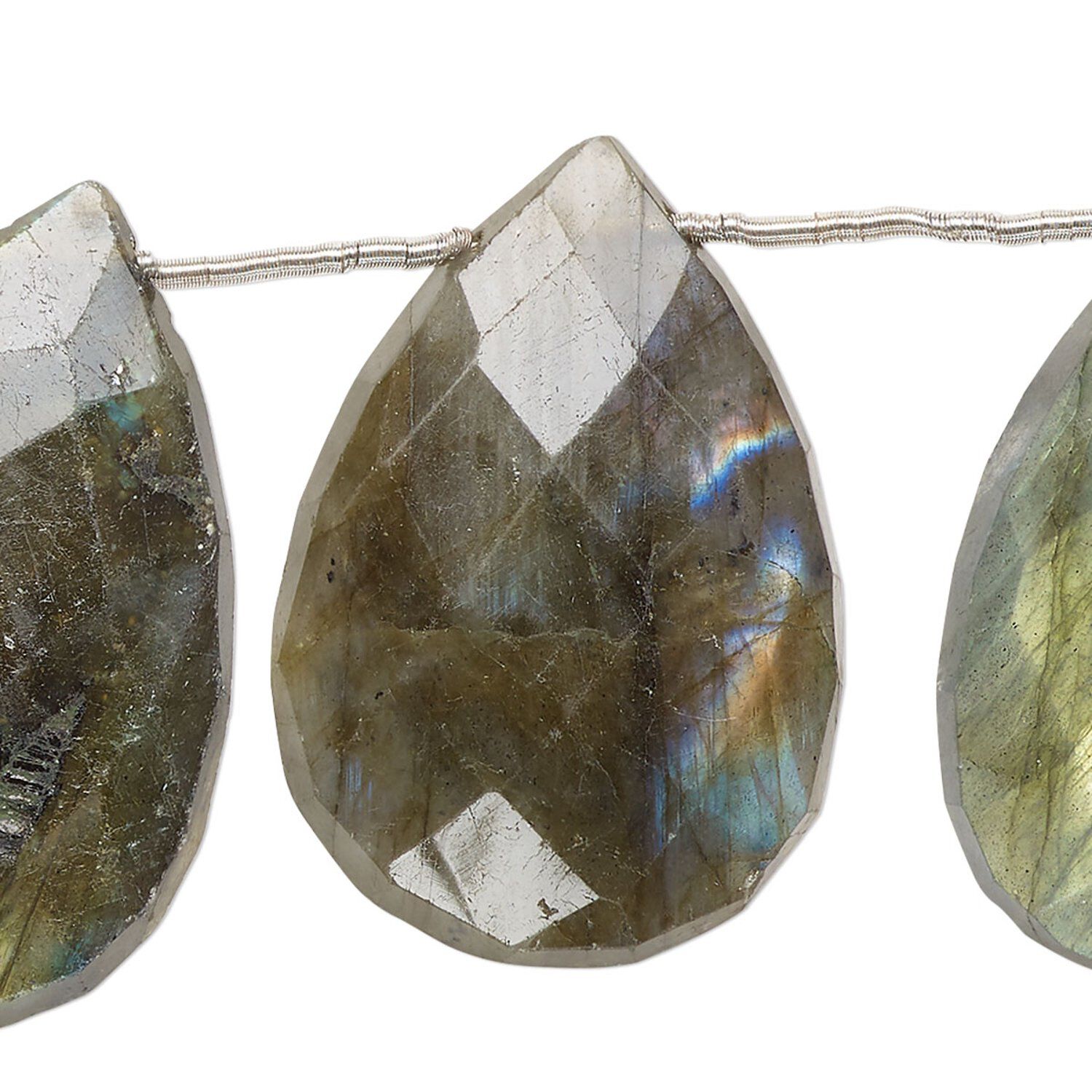 Labradorite 1pkg7, hand-cut top-drilled faceted puffed teardrop bead natural 33x20mm-41x28mm