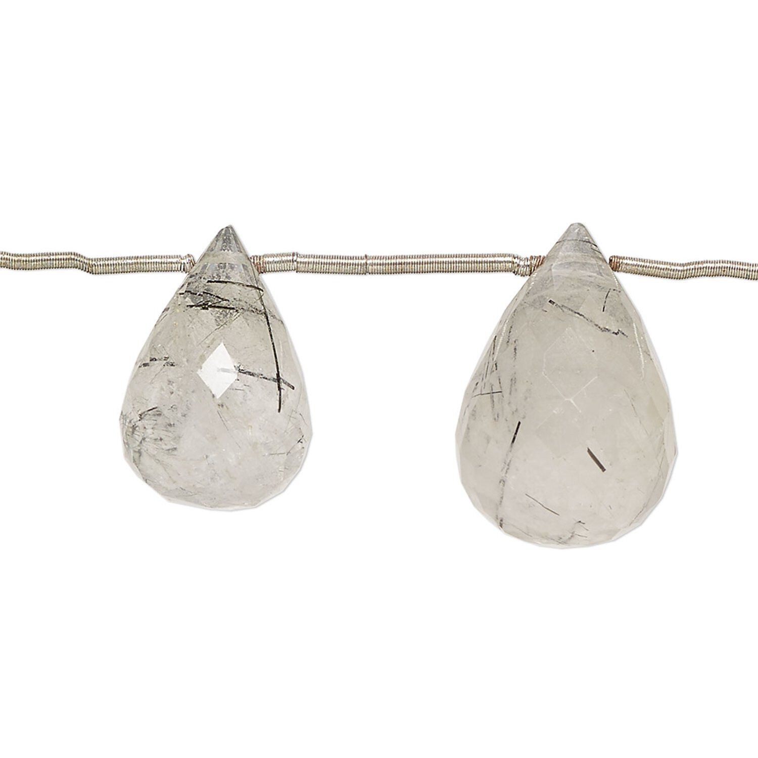 Tourmalinated quartz 1pkg12, hand-cut top-drilled faceted briolette bead natural graduated 12x8mm-23x15mm