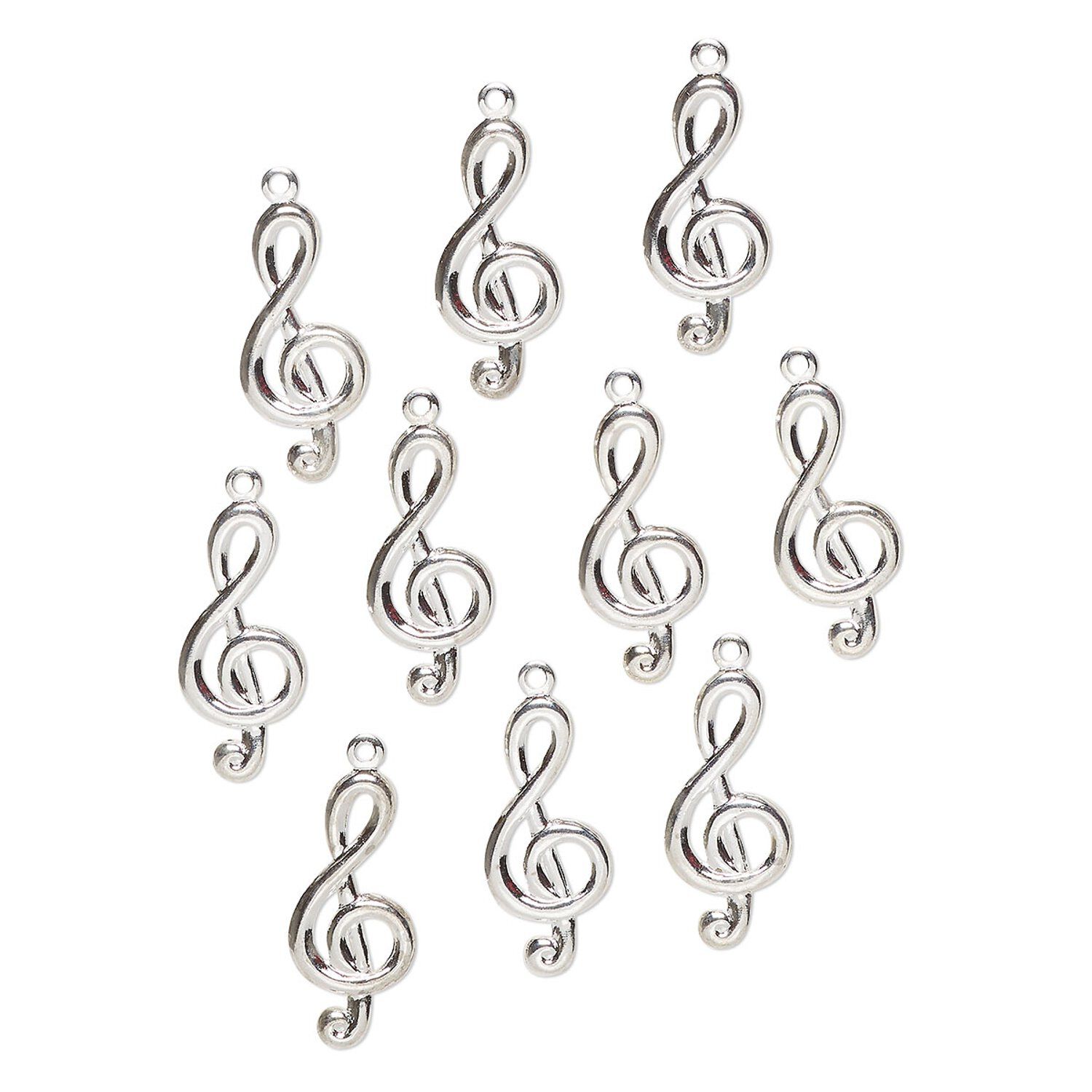 Charm, steel, pkg/10, 22x9mm treble clef, silver finish.