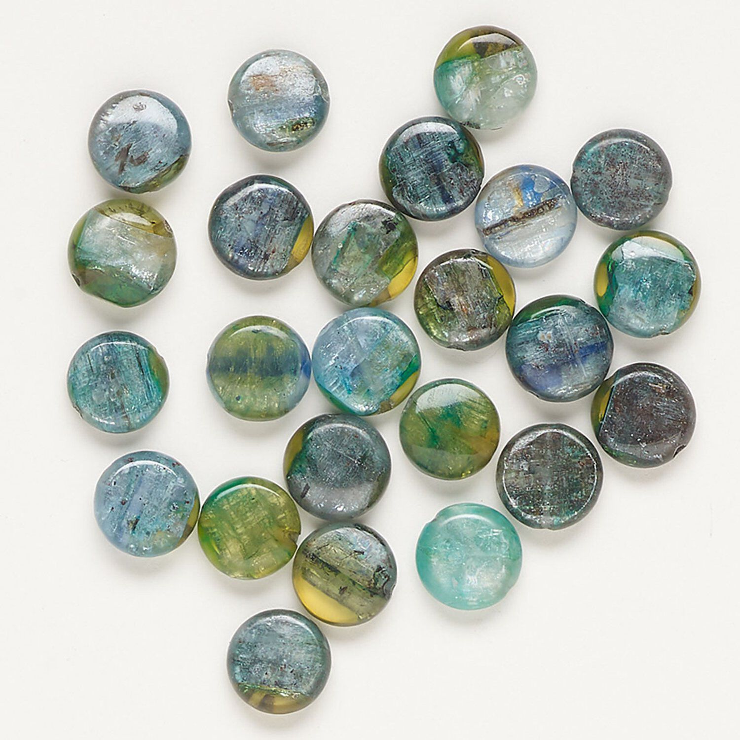 With fantastic blue translucent hues with an inner metallic shimmer, flat round kyanite beads have a refreshingly cool quality. Natural blue kyanite has varying color patterns, which add to the individual beauty of each bead. In the metaphysical realm, kyanite is strongly believed to facilitate meditation.