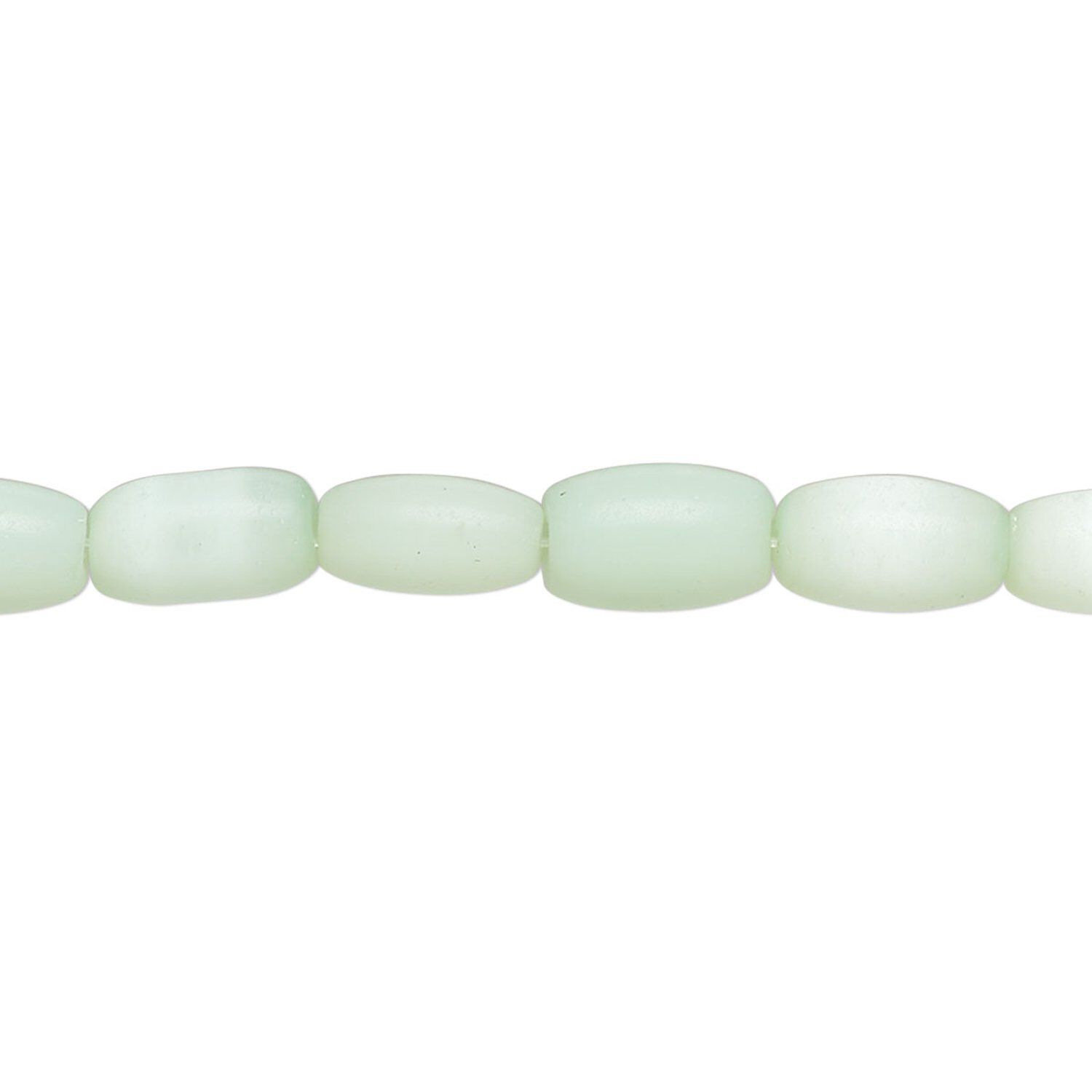 Bead, cat's eye glass (fiber optic glass), pkg/14 inch, opaque light green, 9x5mm center-drilled oval.