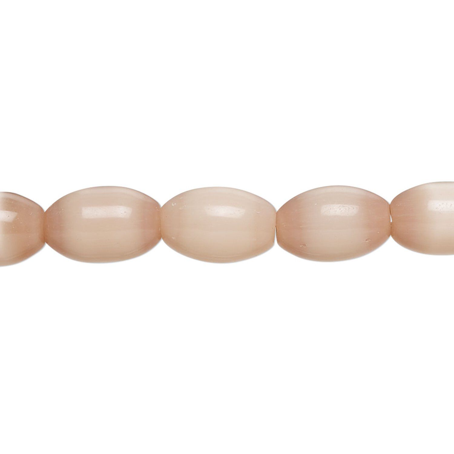 Bead, fiber optic glass, pkg/14 inch, opaque peach, 11x7mm center-drilled oval.