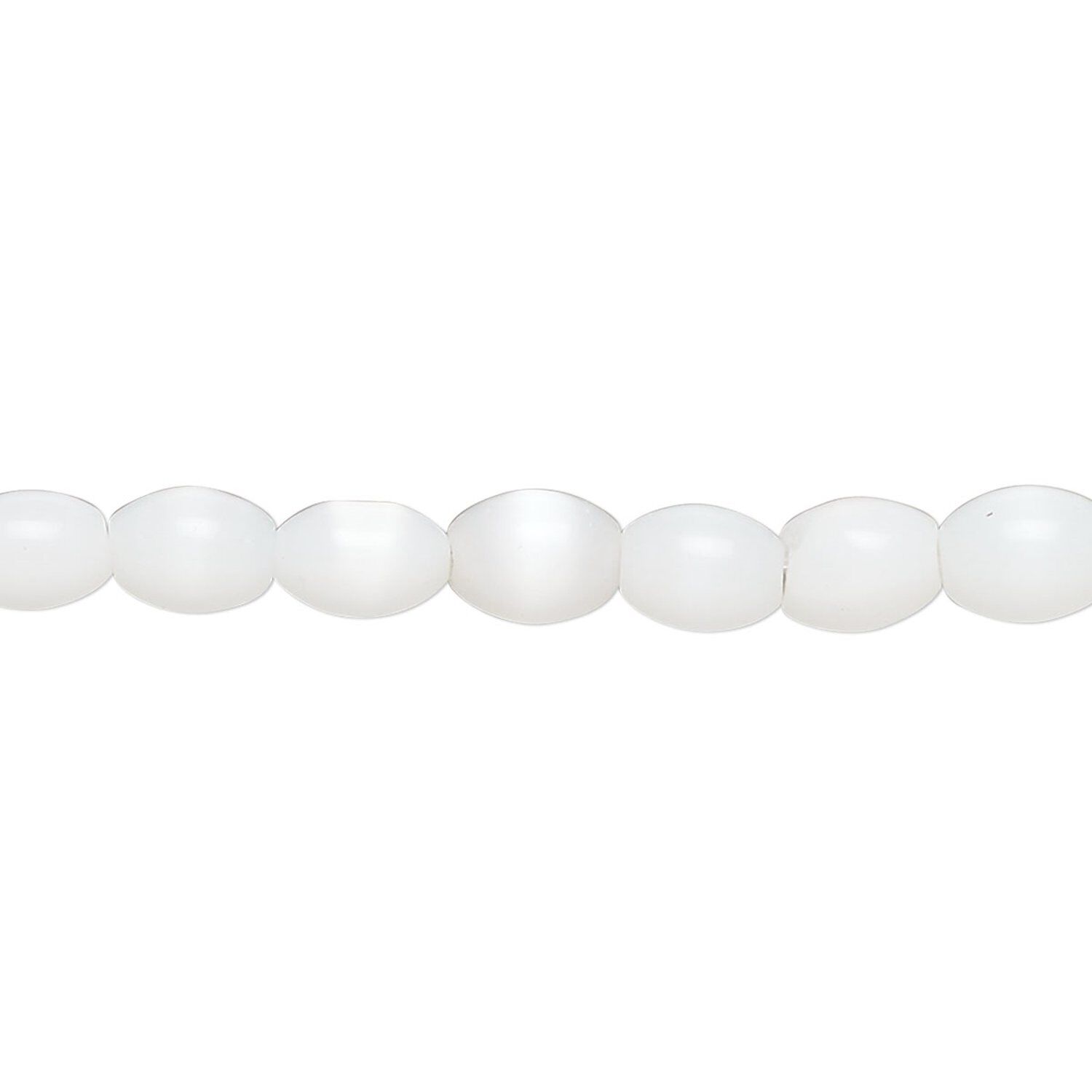 Bead, fiber optic glass, pkg/14 inch, opaque white, 6x4mm center-drilled oval.