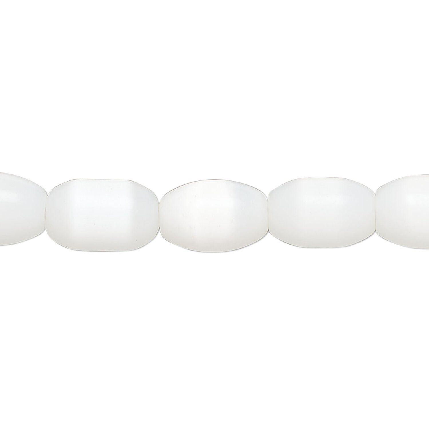 Bead, fiber optic glass, pkg/14 inch, opaque white, 11x7mm center-drilled oval.