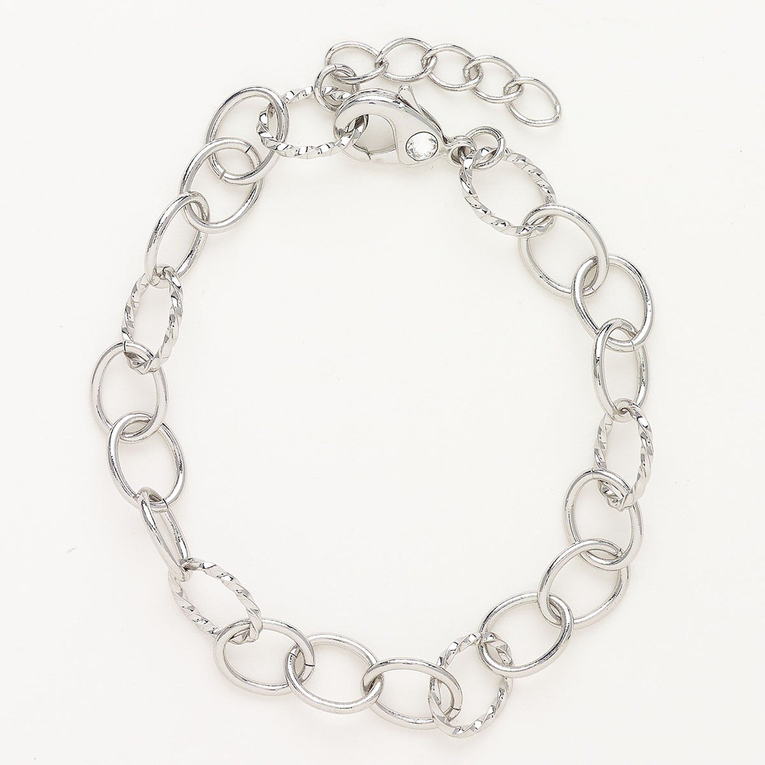 Bracelet, "pewter" (zinc-based alloy) and glass, pkg/1, 7-1/2 inches with lobster claw clasp, 8mm oval and twisted oval, silver finish and clear.