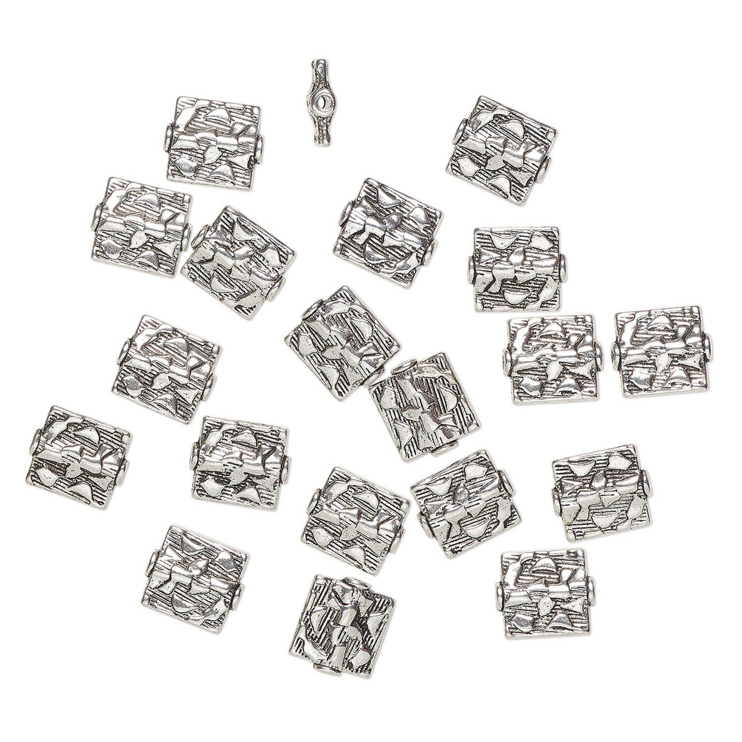 Bead, "pewter" (zinc-based alloy), pkg/20, 12x10mm-12x11mm textured flat rectangle, antique silver finish.