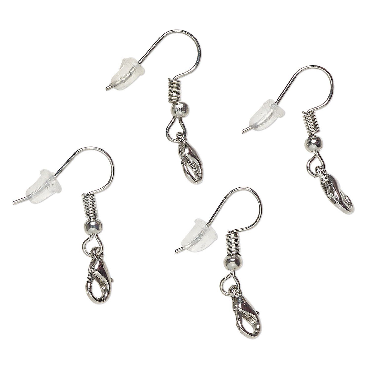 Ear wire fishhook 1pkg4, 19mm / lobster claw clasp / safety nut, 22 gauge silver-finished steel / brass 2 pair