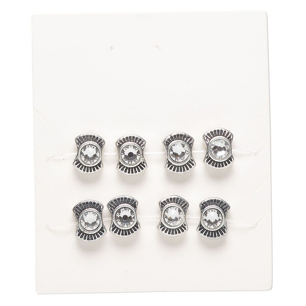 Bead, "pewter" (zinc-based alloy) and crystal, pkg/8, 11x8mm pinched round, antique silver finish and clear.