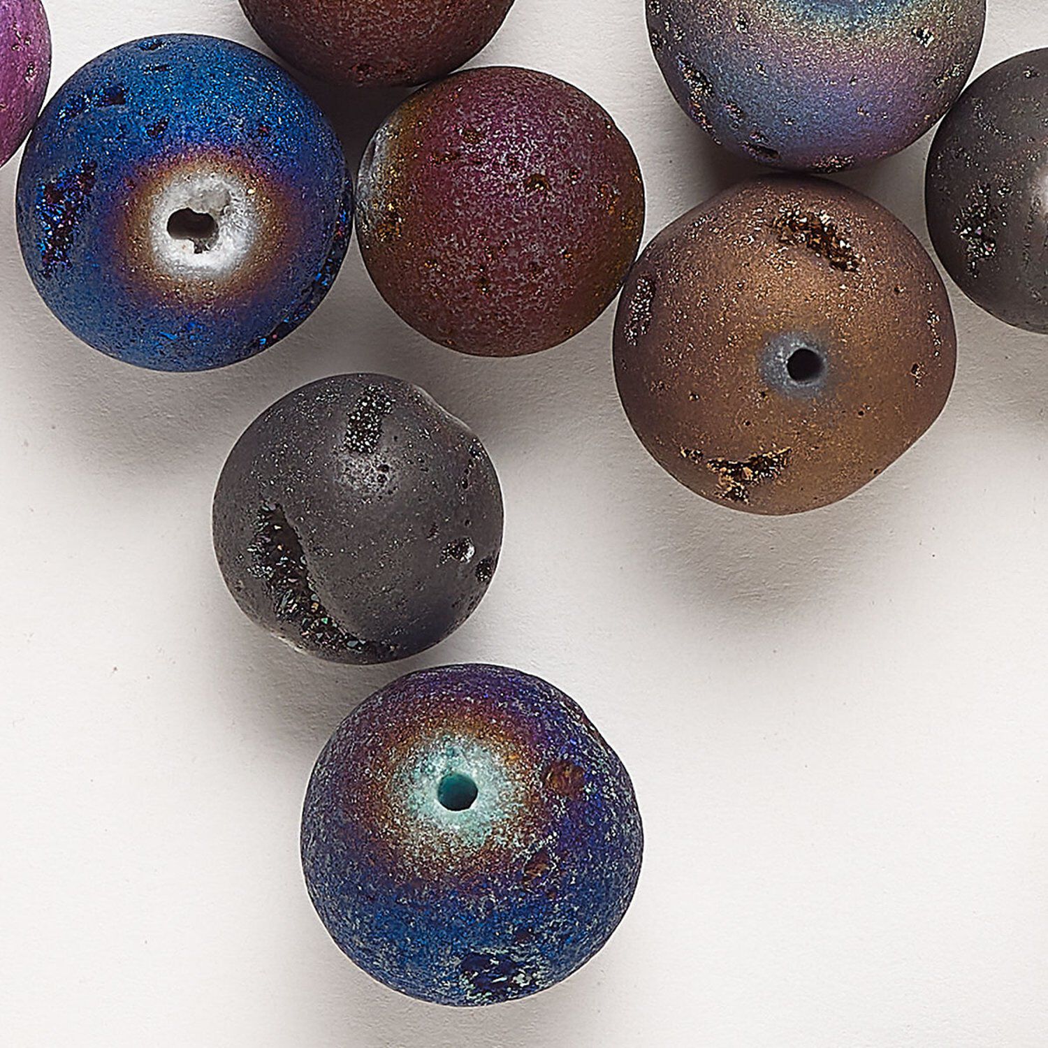 Druzy agate 1pkg1, round bead 2 oz mix 12-14mm