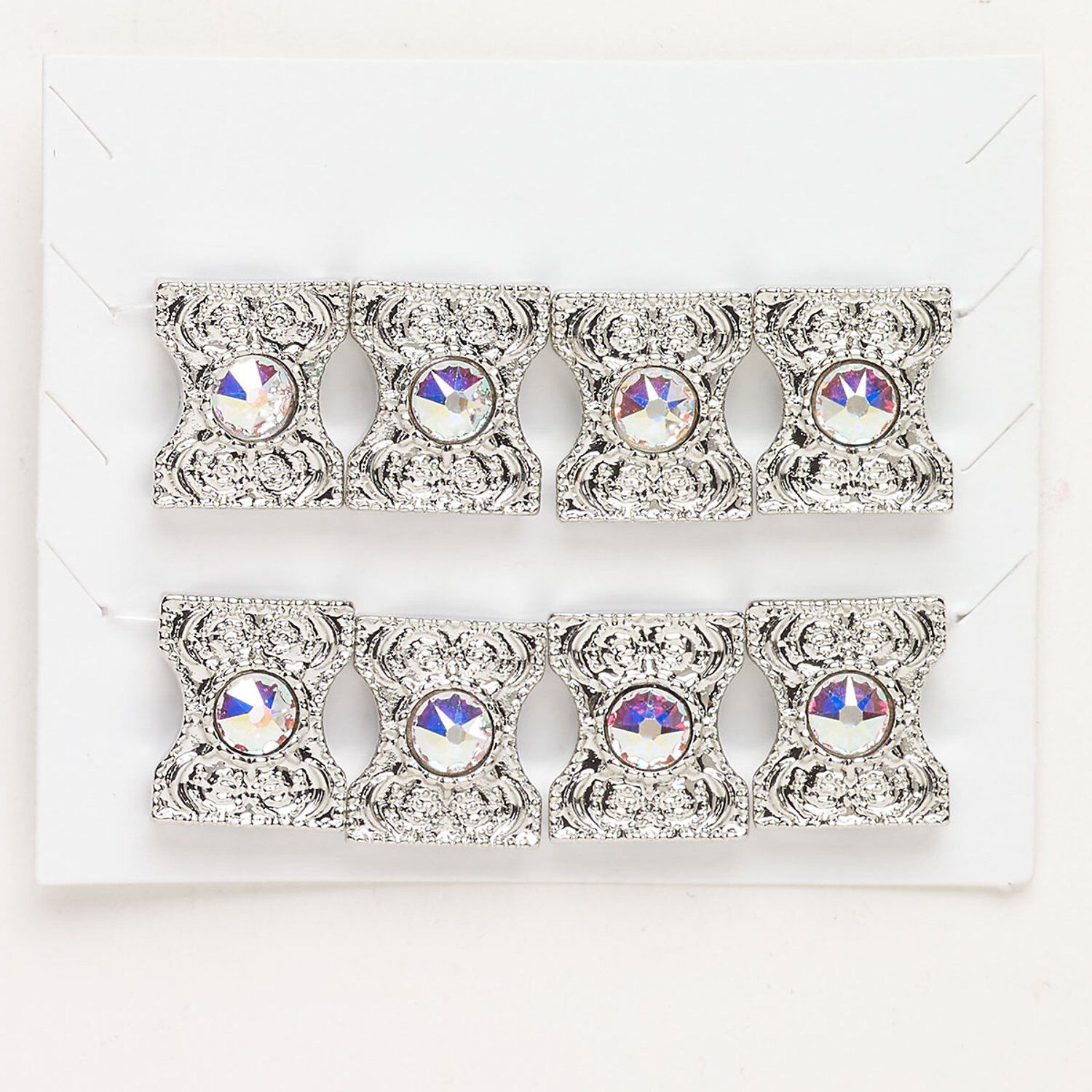 Bead spacer "pewter" zinc-based alloy glass 8pk 13x12mm textured hourglass, silver finish clear AB fits up to 5.5mm beads