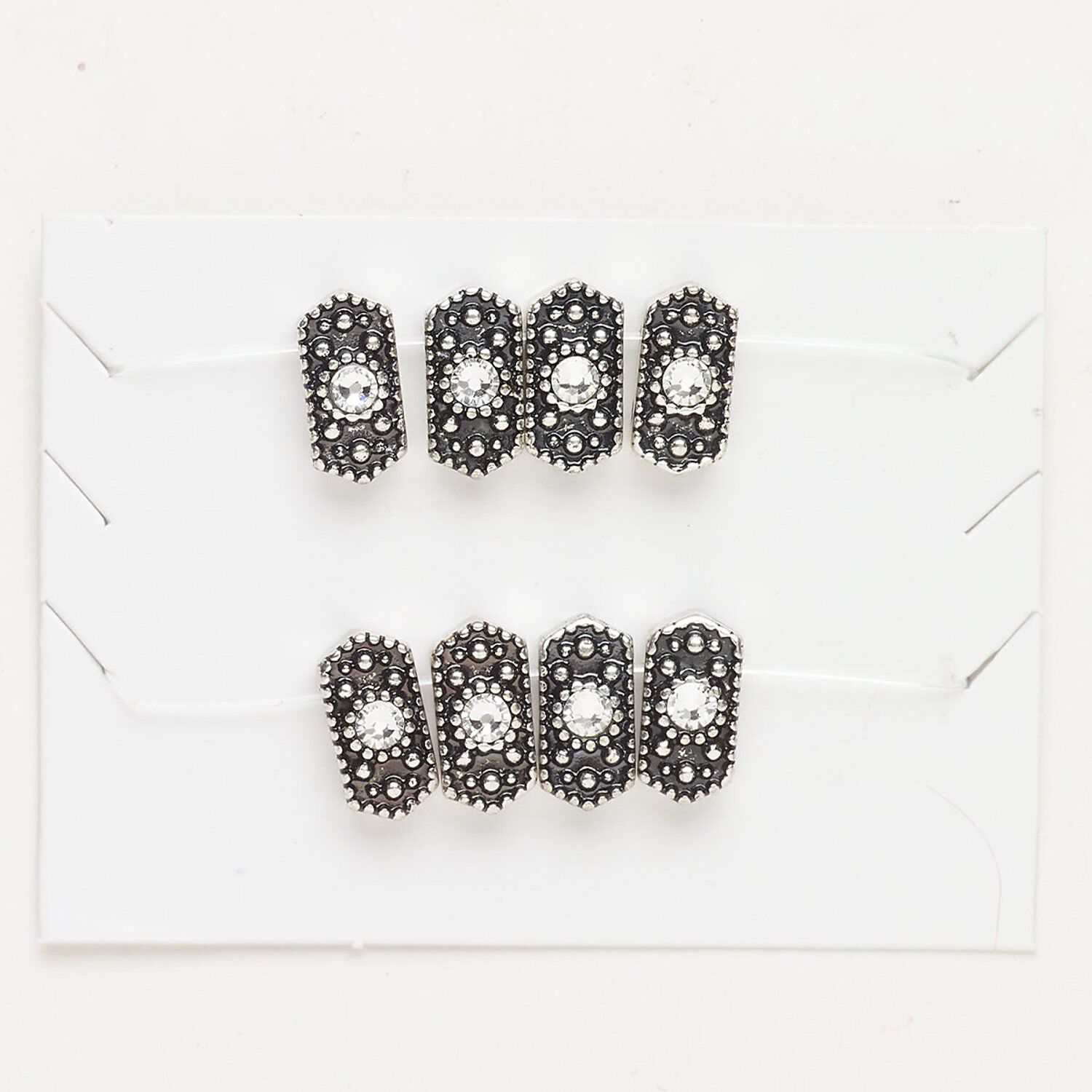 Bead spacer brass 8pk 11x6mm textured hexagon, antique silver finish clear fits up to 5mm beads