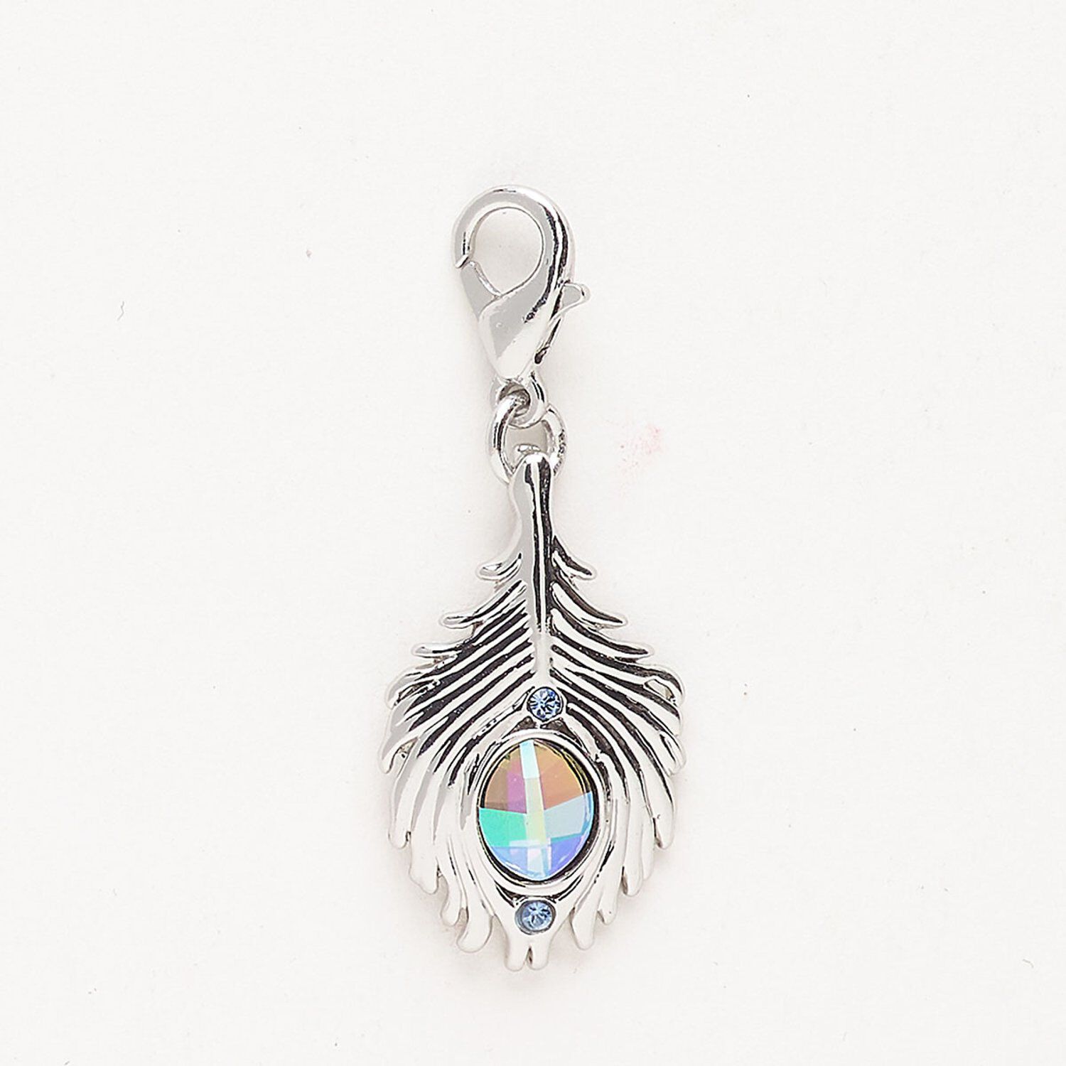 Charm "pewter" zinc-based alloy crystal 1pk 21x13mm feather lobster claw clasp, silver finish sapphire jet AB
