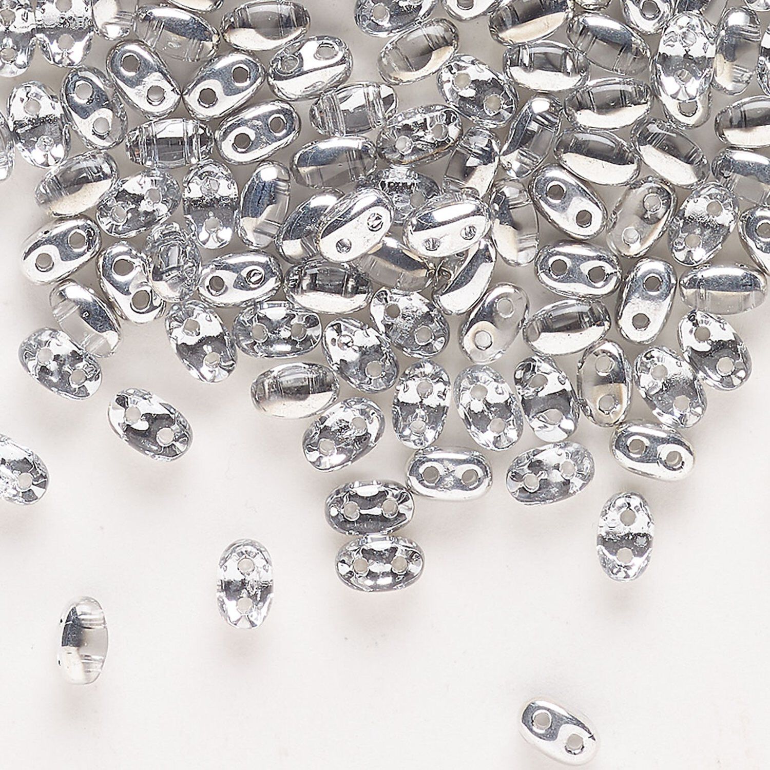 Seed bead glass 200pk 5x2.5mm 2-strand oval, opaque 2-tone silver iris