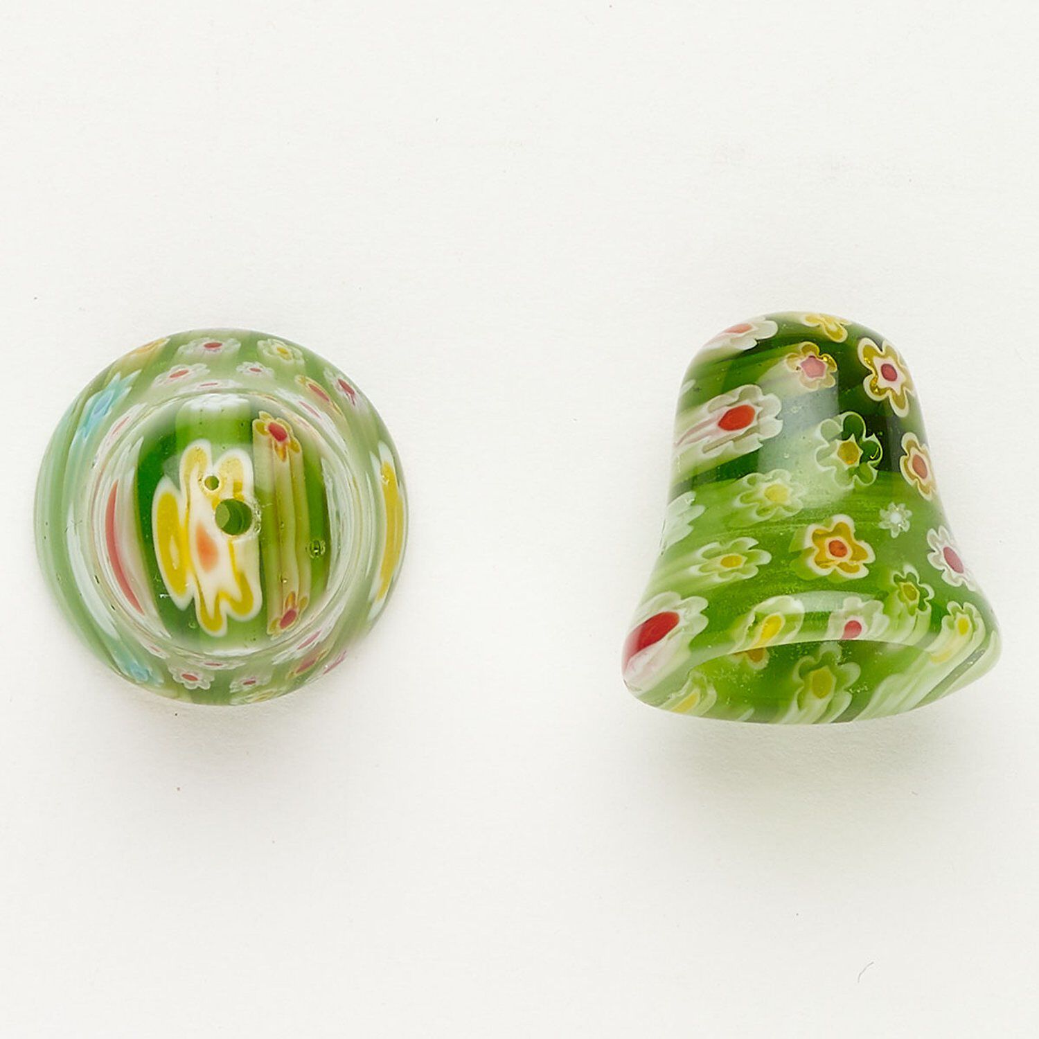 Cord end 1pkg1 millefiori glass, translucent and transparent multicolored, 17-18mm bell.
