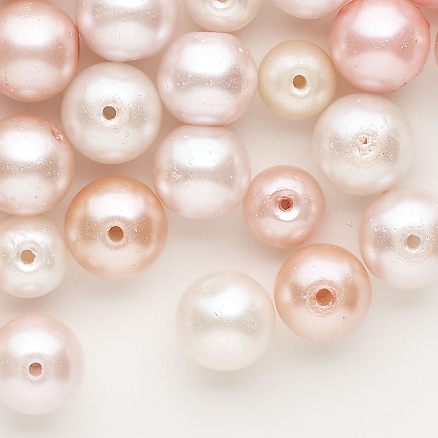 Bead mix 1pkg1, glass pearl, pink / light pink / dark pink, 7-10mm round, 2 ounces
