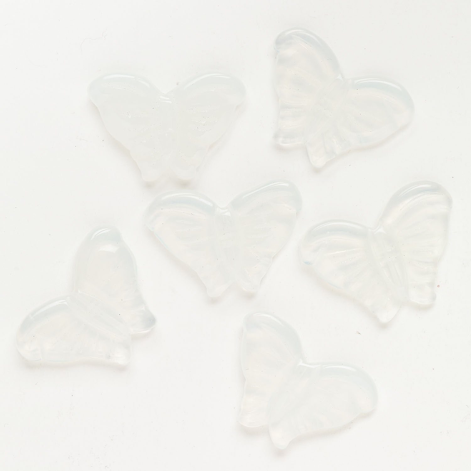 Sea "opal" glass 1pkg6, carved butterfly bead 29x24-36x24mm