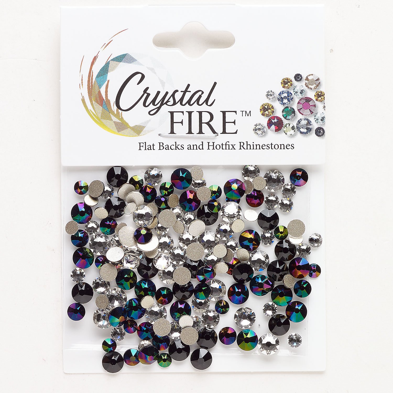 Flat back mix 1pkg144 jet and crystal vitrail medium, Crystal FIRE®, 3.00-4.80mm round SS12 / SS16 / SS20