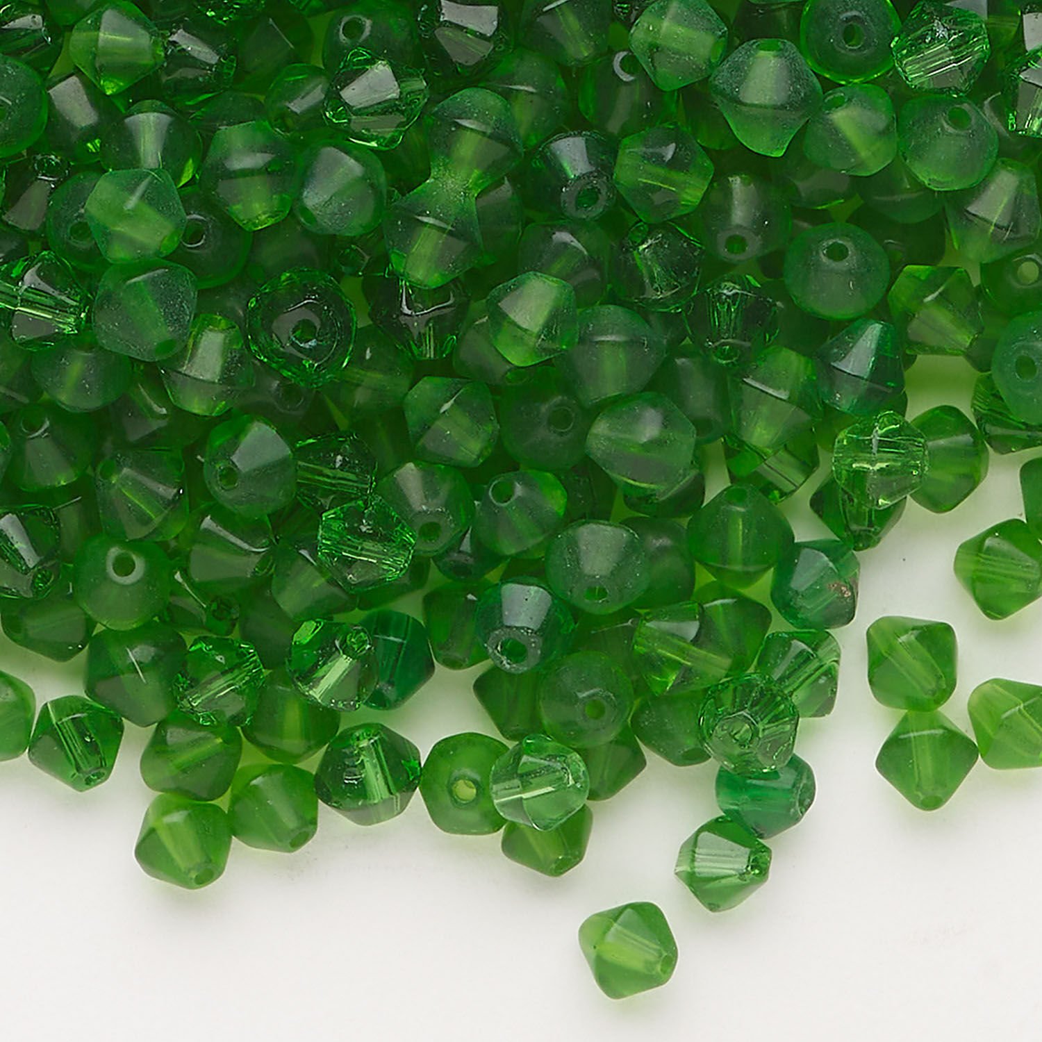 Bead, glass 1pkg1, translucent green, 4mm bicone, 4 ounces.