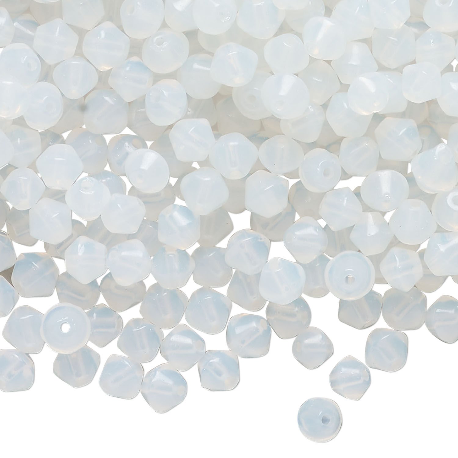 Bead, sea "opal" glass 1pkg1, translucent white, 4mm bicone, 4 ounces.