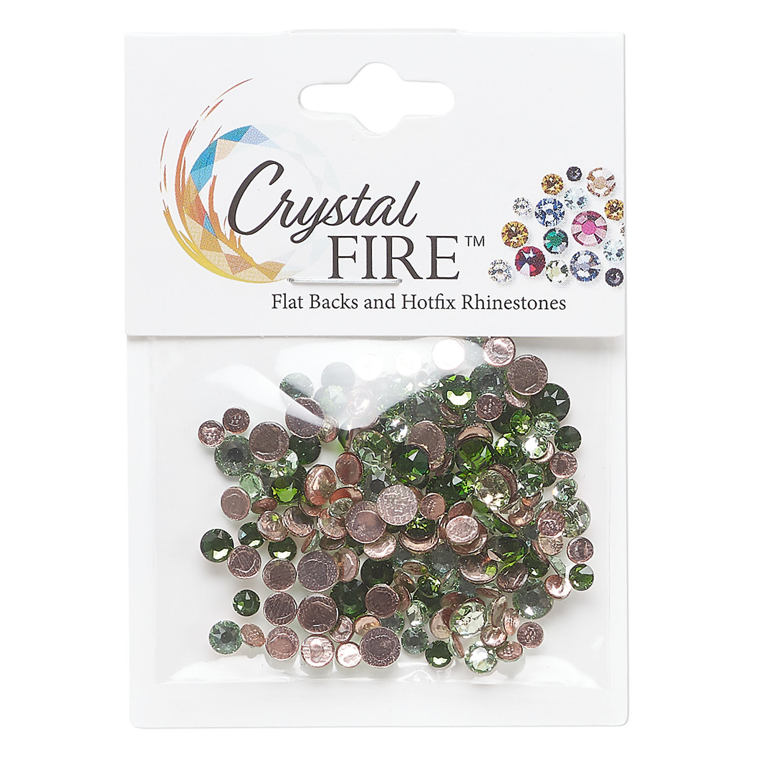 Flat back mix 1pkg144 chrysolite and fern green, Crystal FIRE®, 3.0-4.8mm hotfix round SS12 / SS16 / SS20