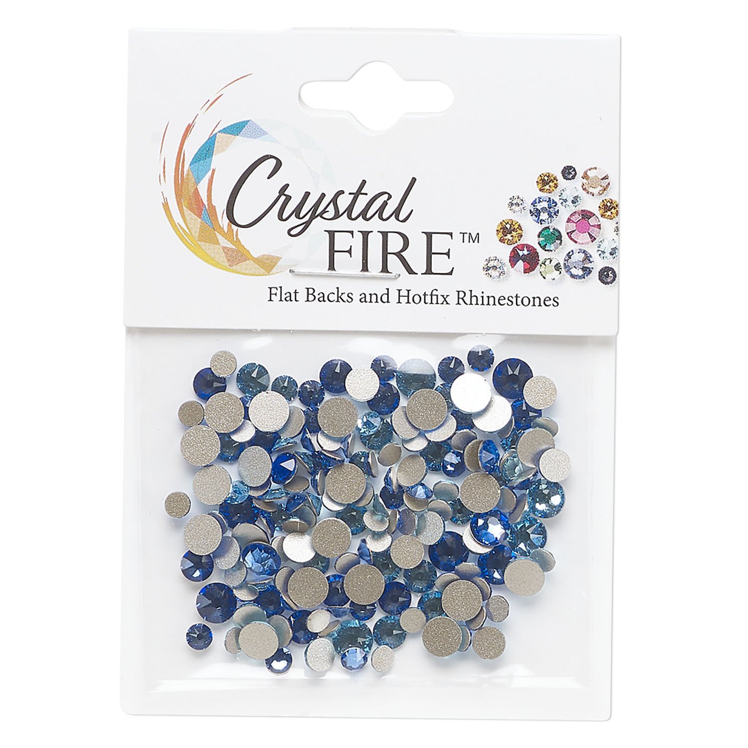 Flat back mix 1pkg144 aquamarine and sapphire, Crystal FIRE®, 3.0-4.8mm round SS12 / SS16 / SS20