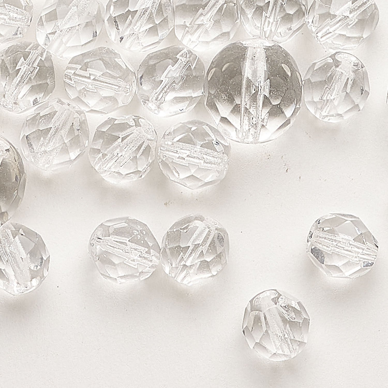 Bead mix 1pkg1, Preciosa Czech fire-polished glass, translucent and transparent crystal clear, 6-17mm faceted round, 50 grams.
