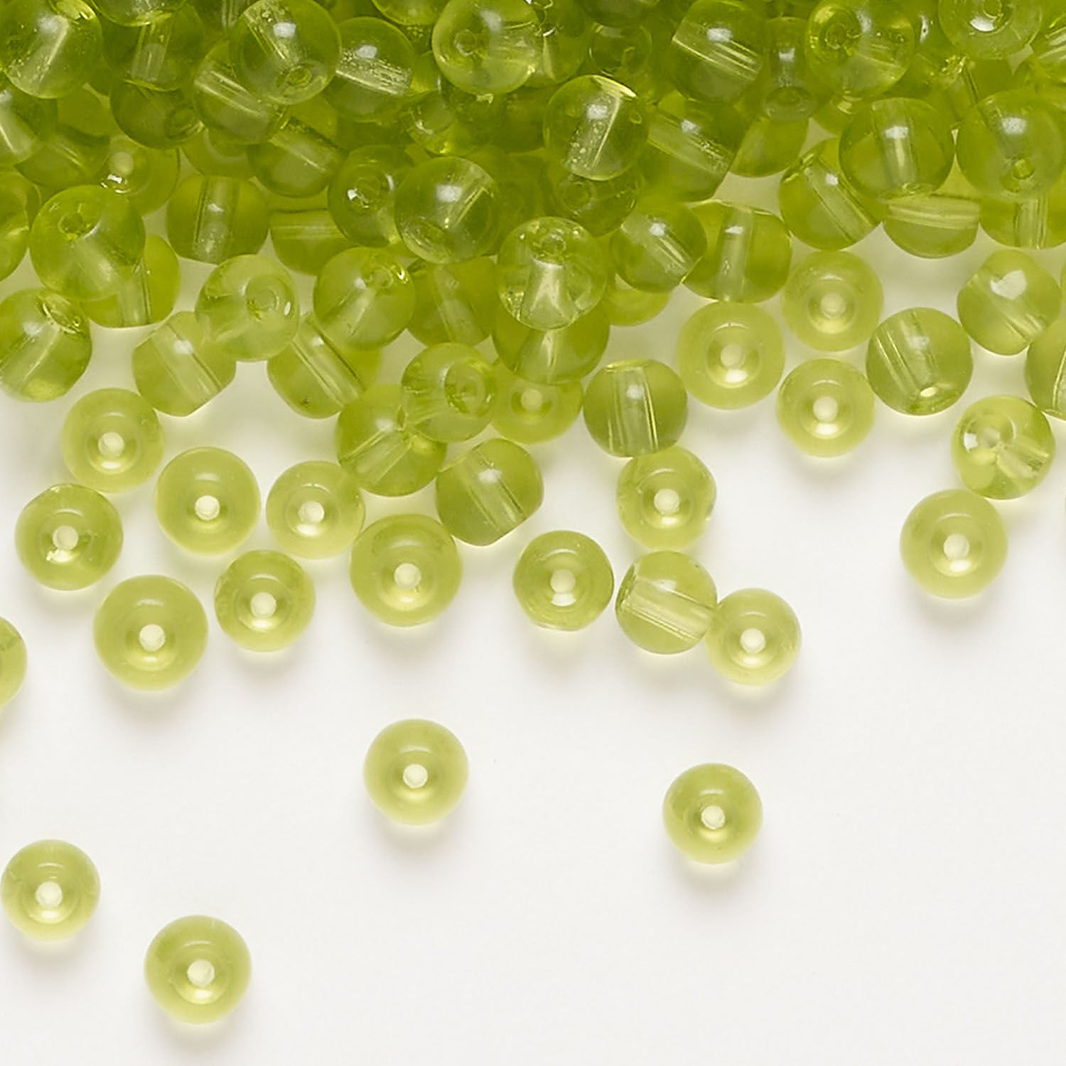 Bead 1pkg1, glass, translucent peridot green, 4mm round, 4 ounces
