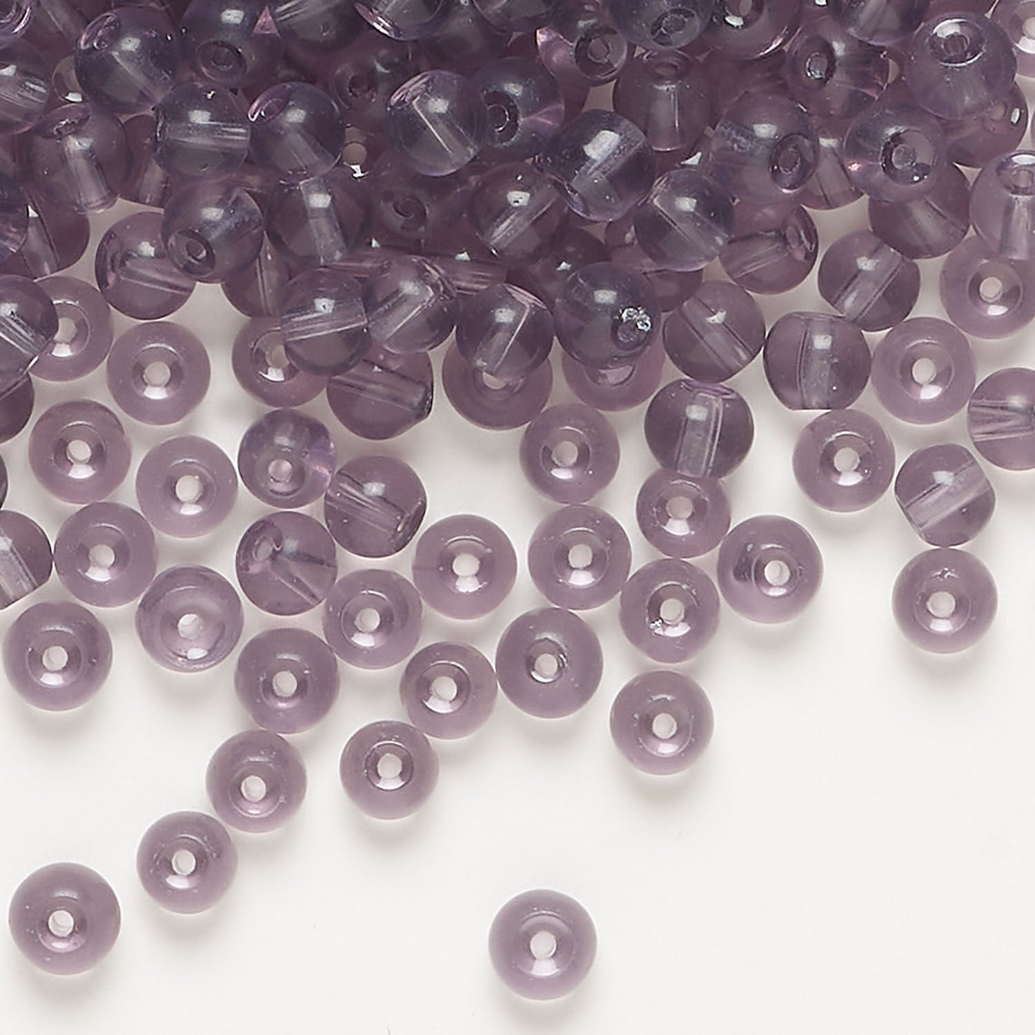 Bead 1pkg1, glass, translucent purple, 4mm round, 4 ounces